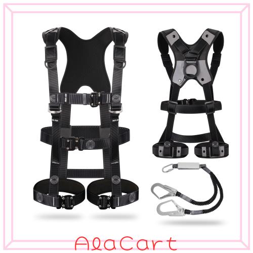 【調整可能なフルハーネス 新規格】:高所での作業を容易にするためには、適切なフィットが重要です。当社の安全帯は、ユーザーが重量内で適切にフィットするように 6 点の調整を提供します。ハーネスが適切にフィットするように、すべてのバックルが接続されていること、レッグ ストラップとショルダー ストラップがぴったりと合っていること、チェスト ストラップが胸部の中央にあることを確認してください。