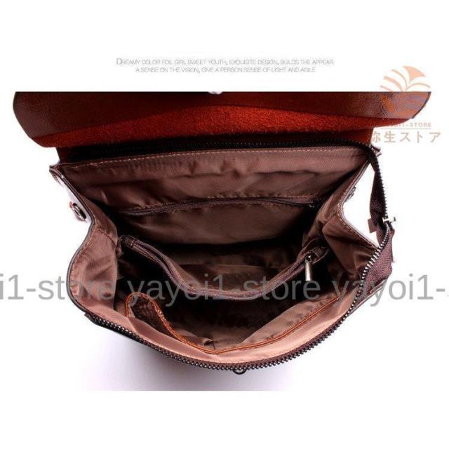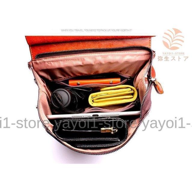リュックサック メンズ 本革 レザー 光沢 バックパック ブラウン アウトドア 雑誌収納