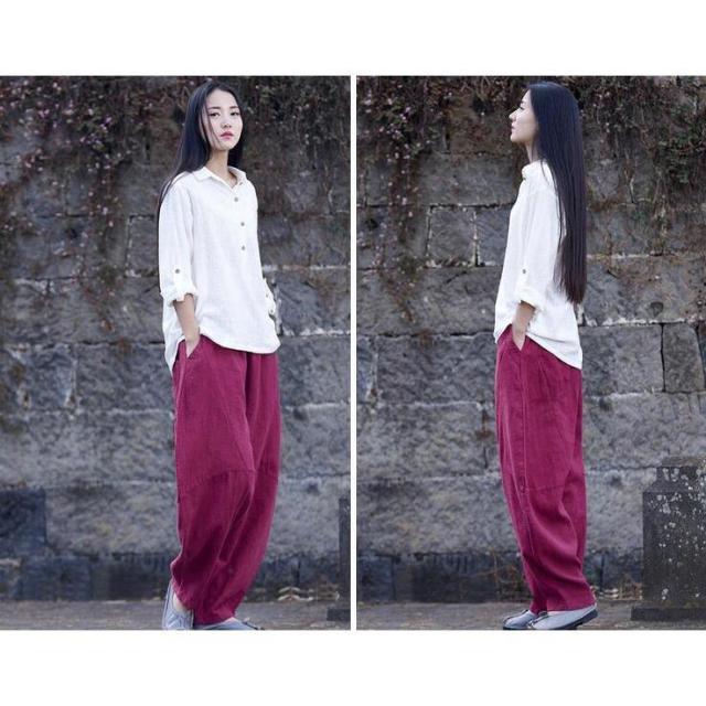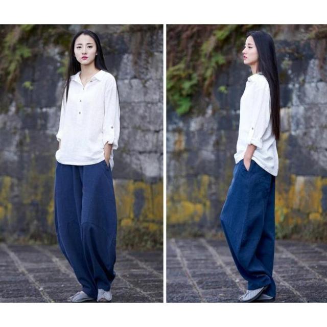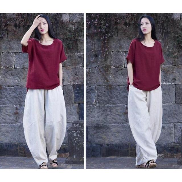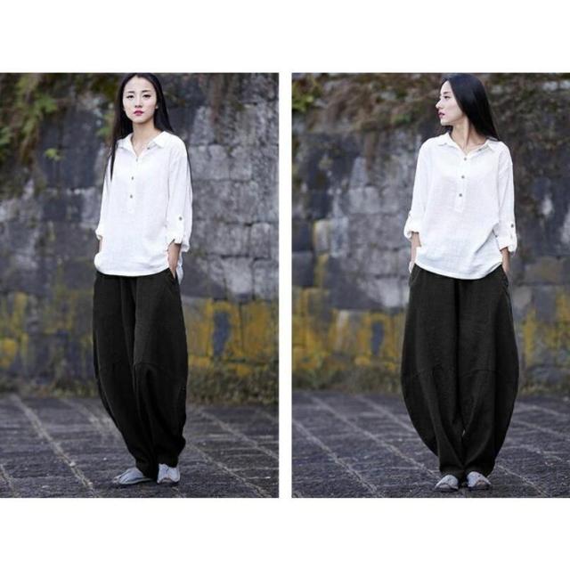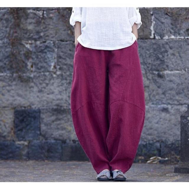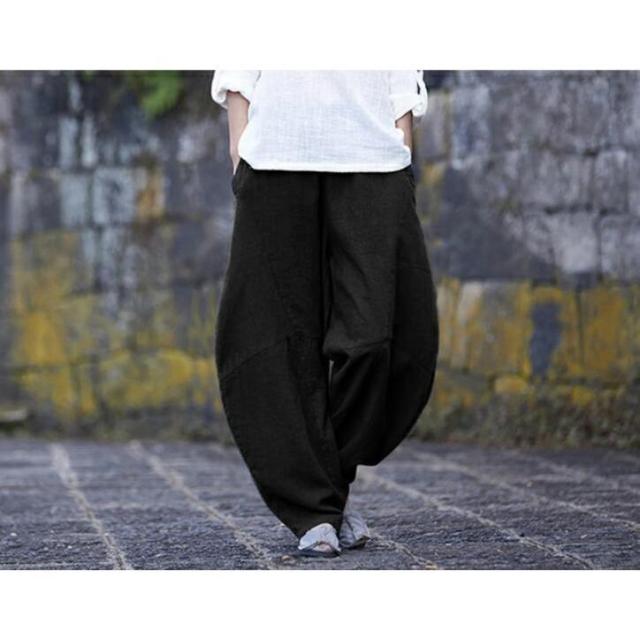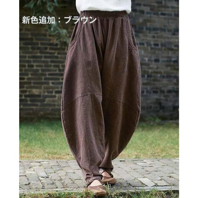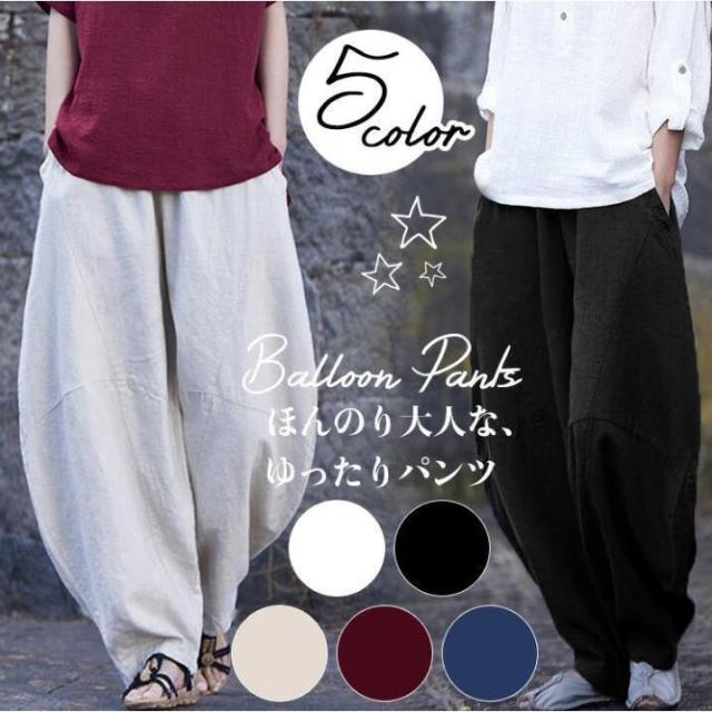ワイドパンツ サルエルパンツ レディース 夏 ロングパンツ イージーパンツ リネン ロング丈 ウェストゴム 無地 ゆったり ハーレムパンツ