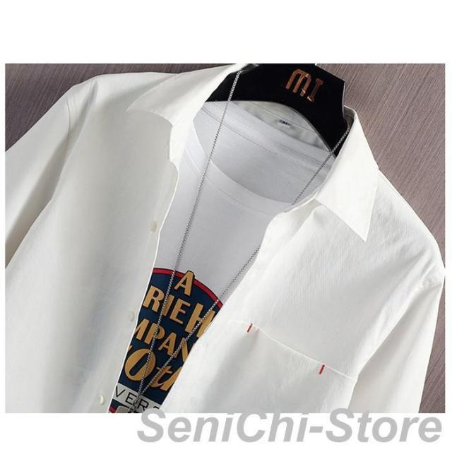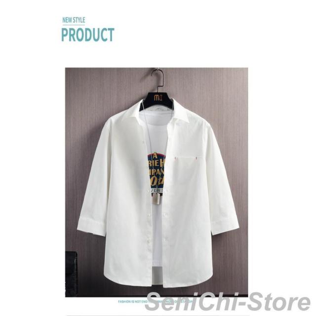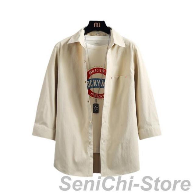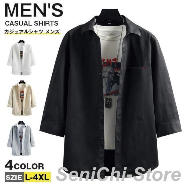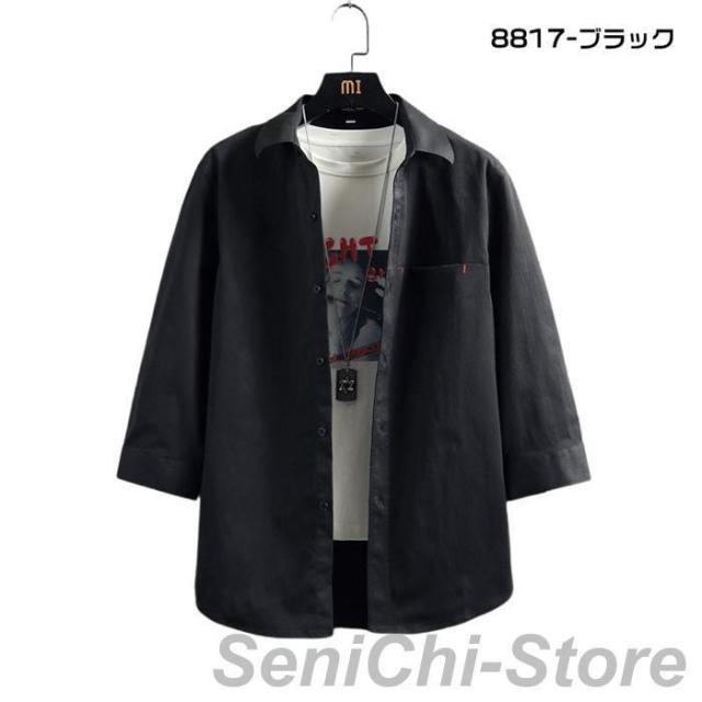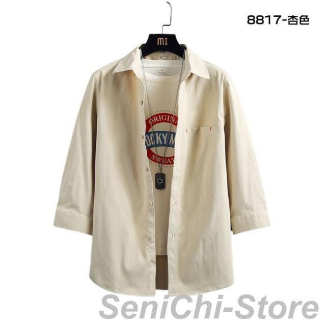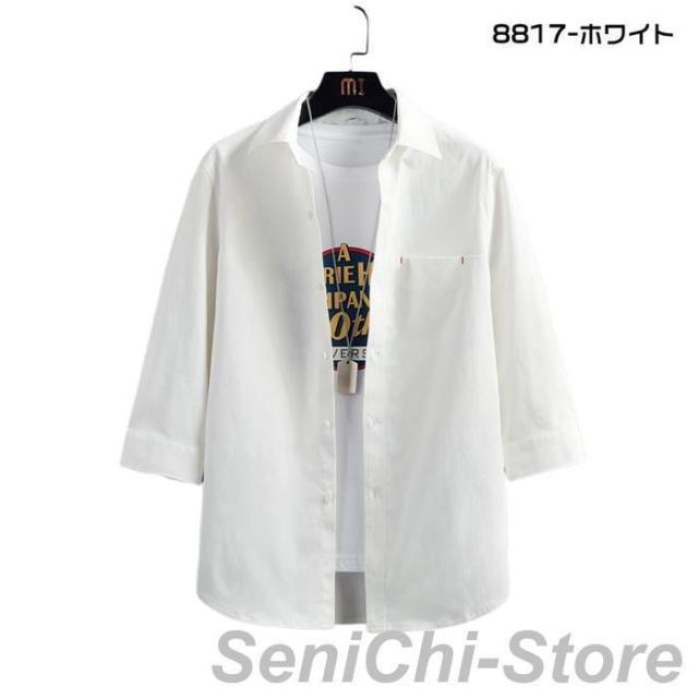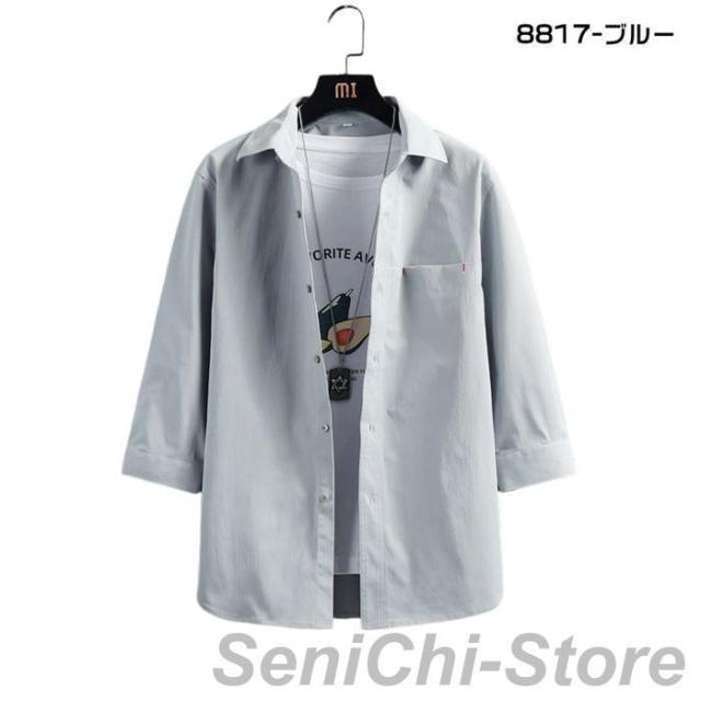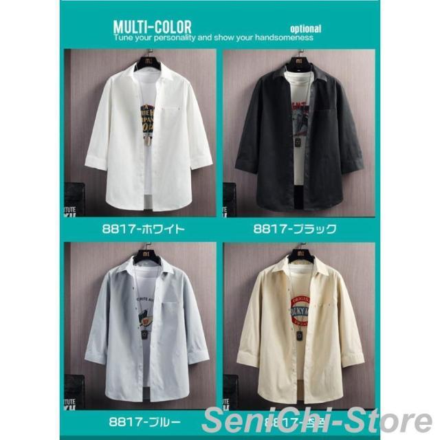 カジュアルシャツ メンズ 七分袖シャツ メンズファッション 特集 8817-ホワイト 8817-ブルー 8817-杏色 8817-ブラック L XL 2XL 3XL 4XL