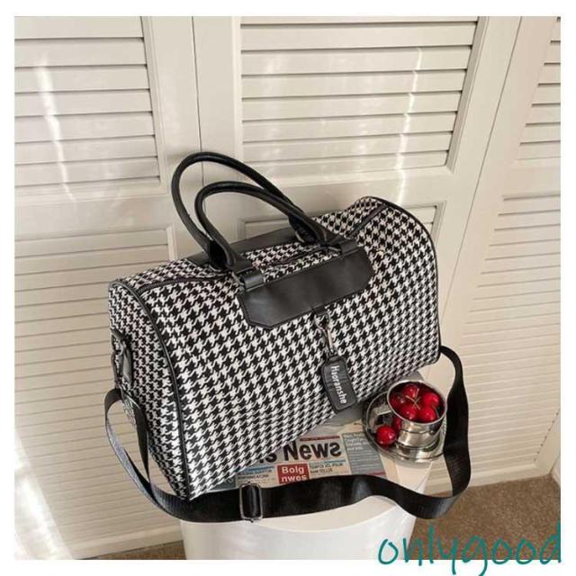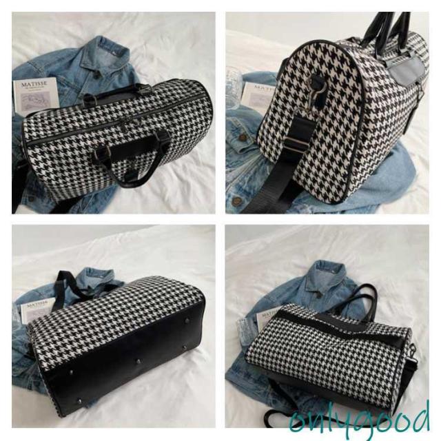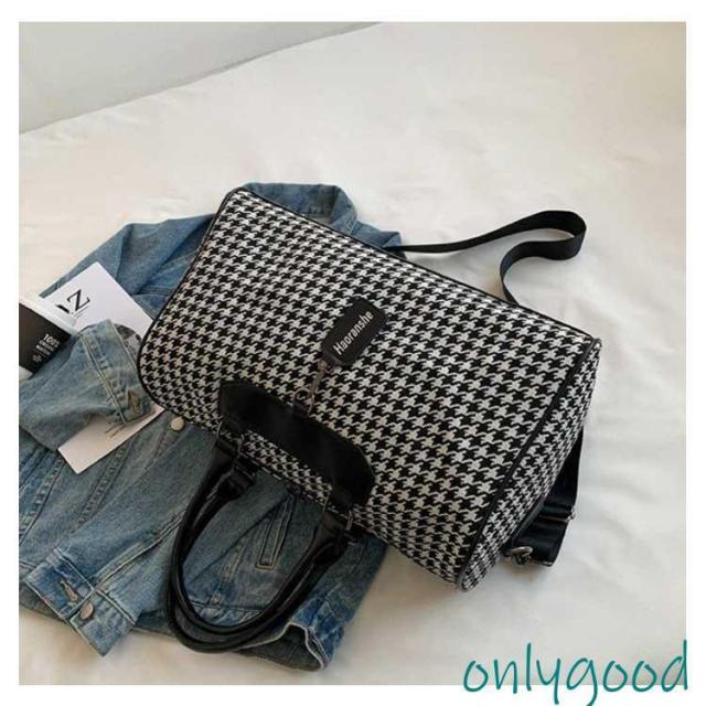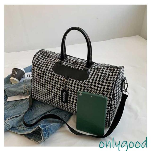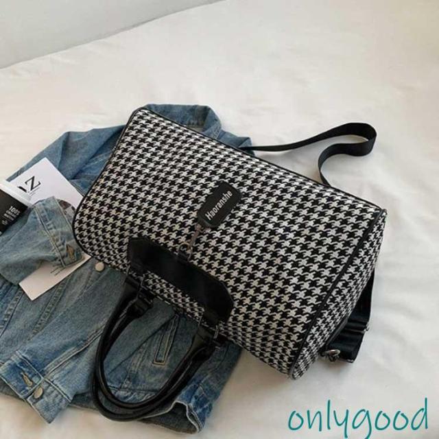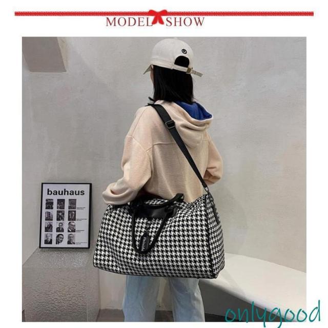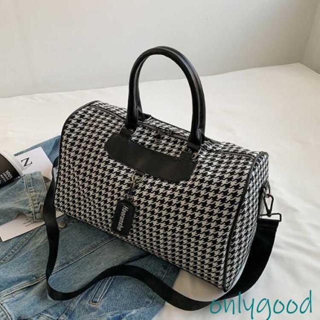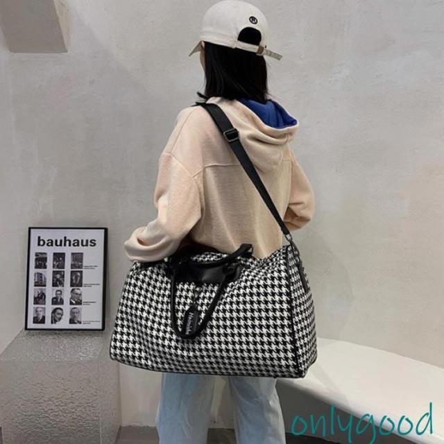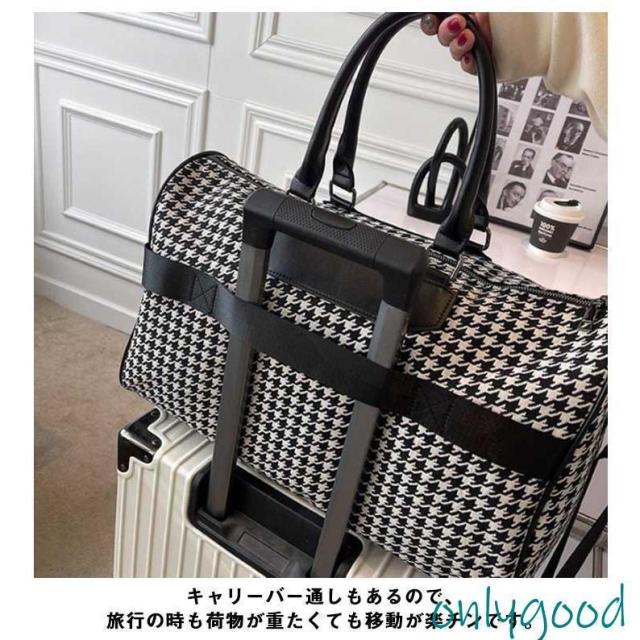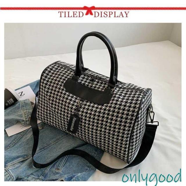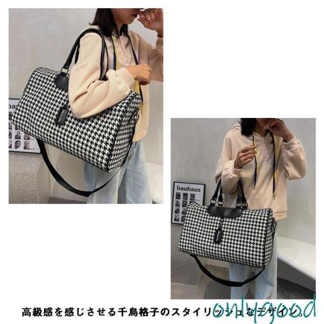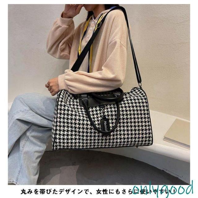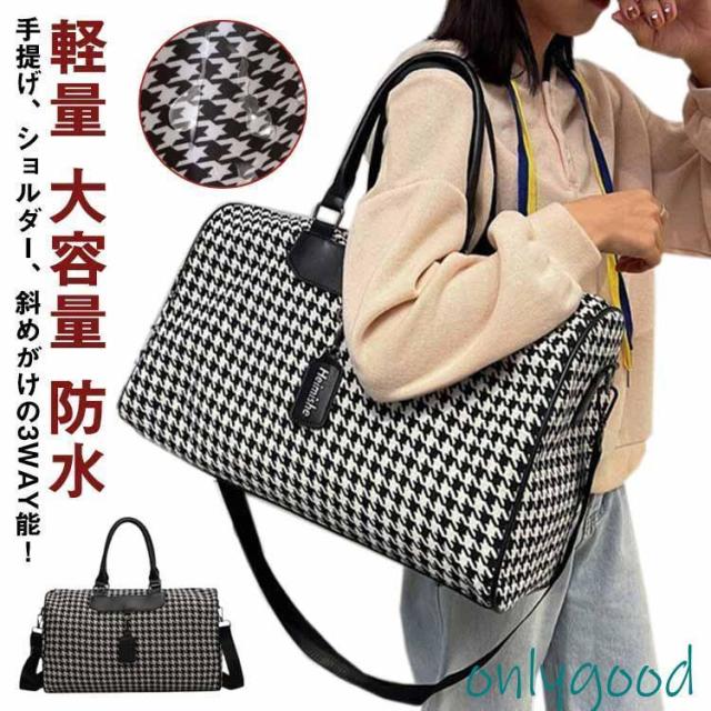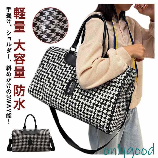 ボストンバッグ 旅行 トラベルバッグ ストラップ付き 千鳥格子 レディース ジムバッグ 軽量 大容量 防水 機内持ち込み 旅行カバン キャリーオ 撥水