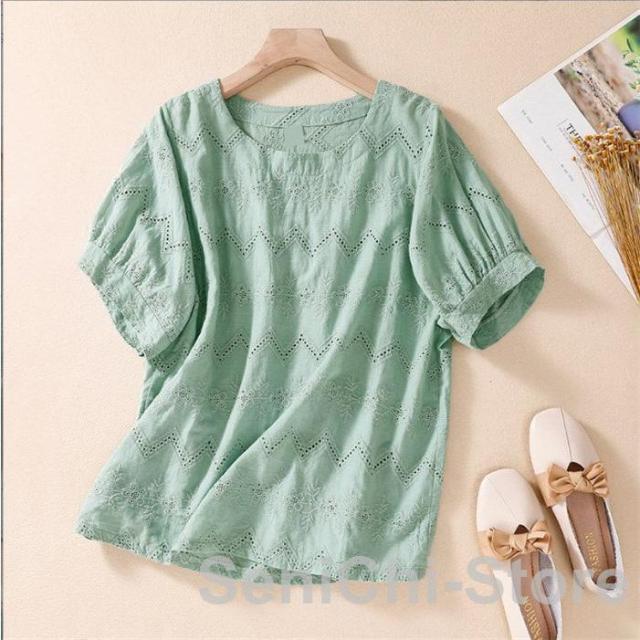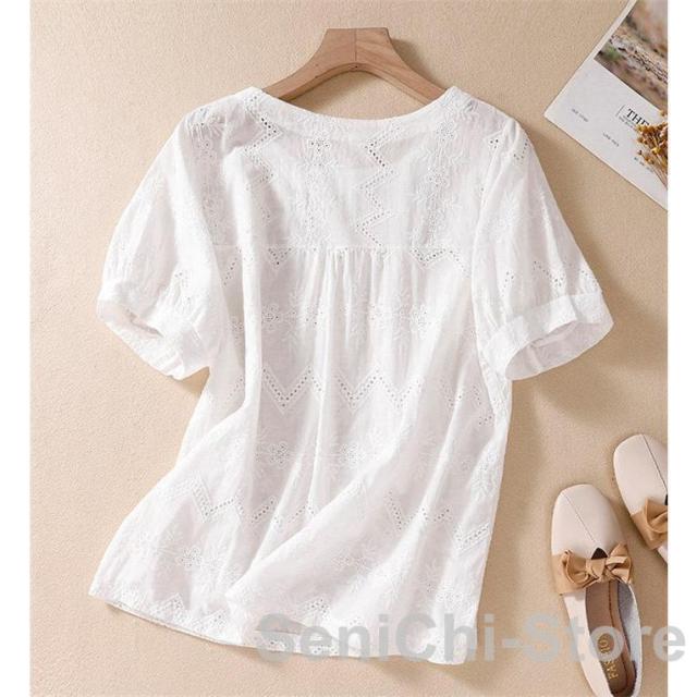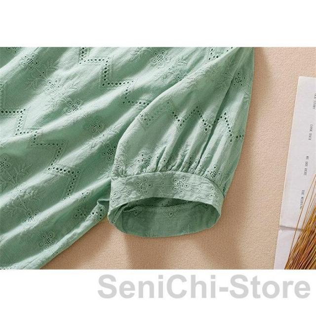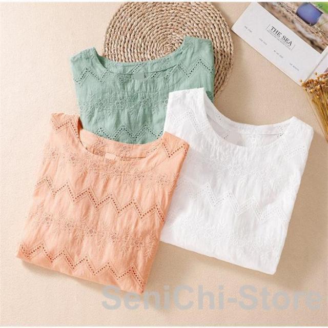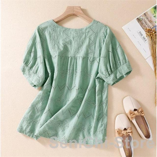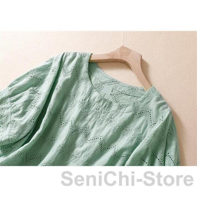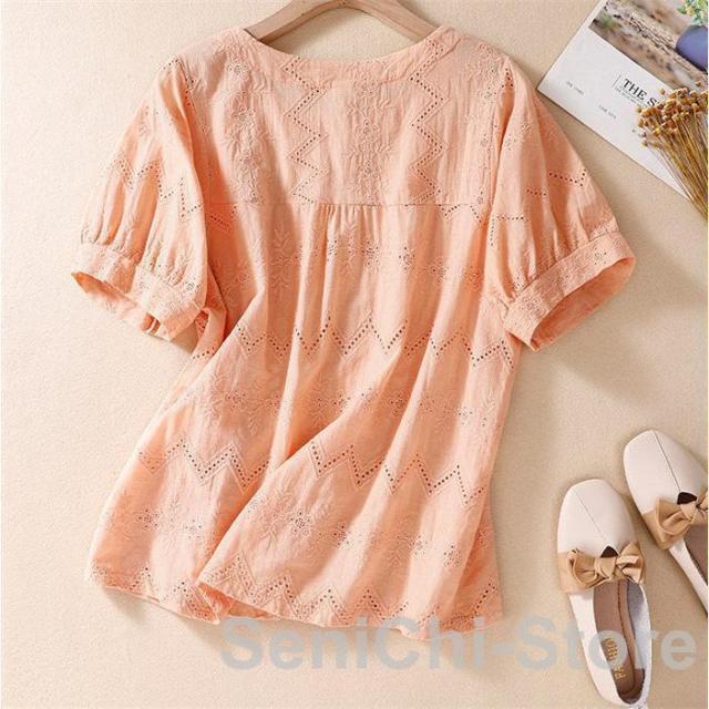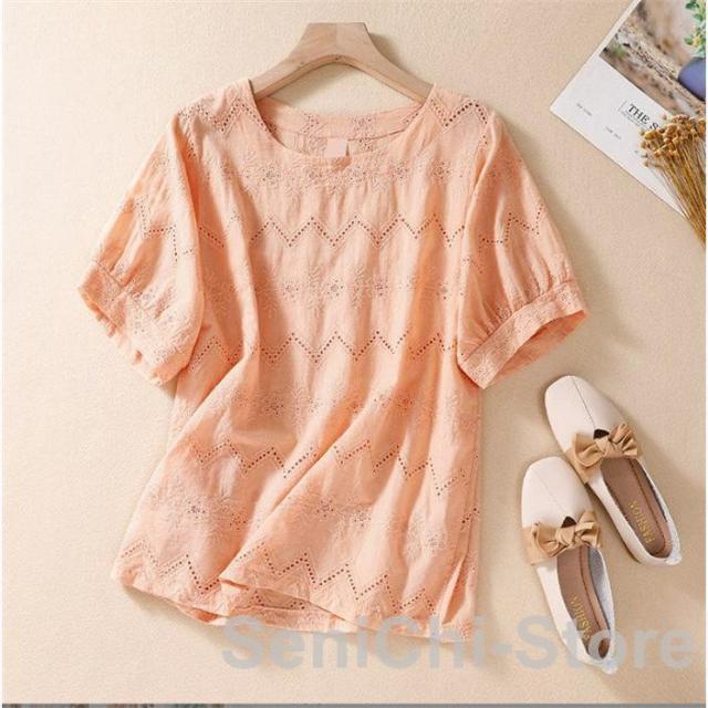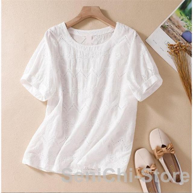 ブラウス トップス シャツブラウス 半袖 レディース チュニック 半袖tシャツ 夏 花柄 刺繍 カットソー 体型カバー 綿 フレア ゆったり 可愛い コットン