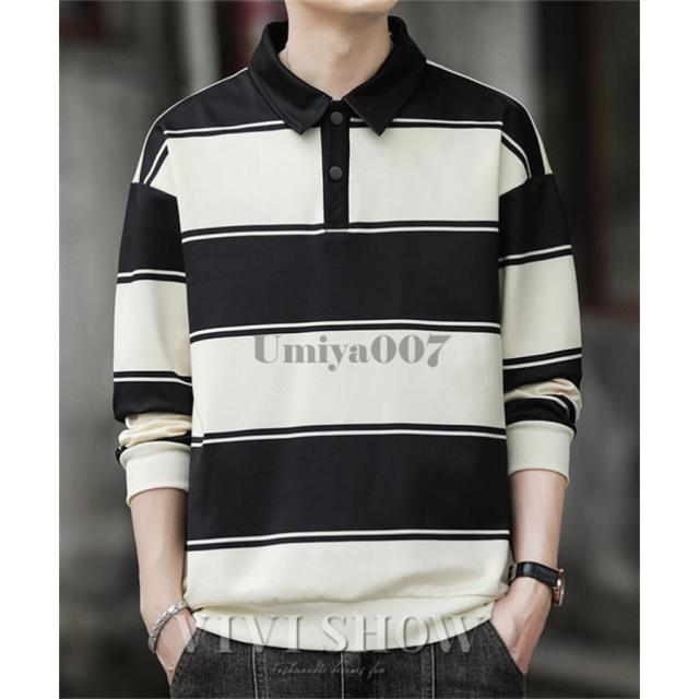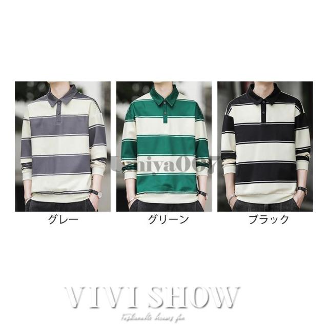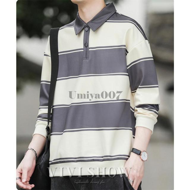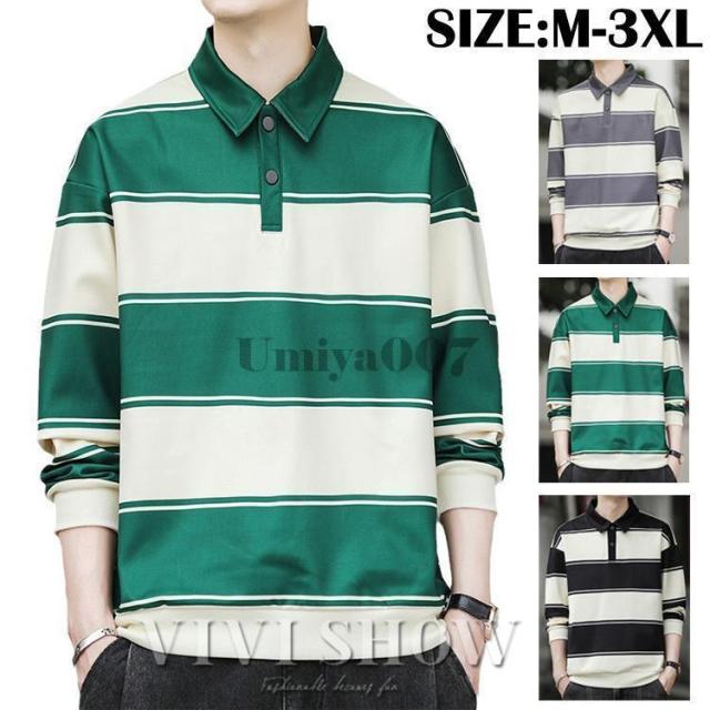 ポロシャツ メンズ コットン ボーダー 長袖 ラガーシャツ ビッグサイズ オーバーサイズ アメカジ ストリート カジュアル 古着MIX