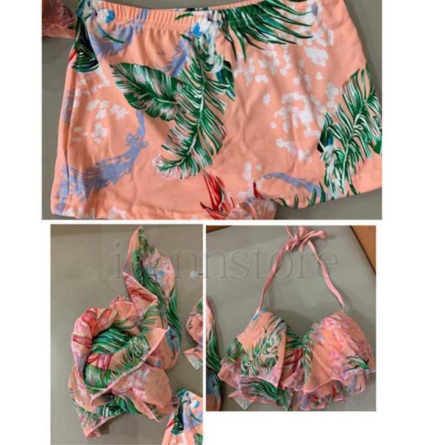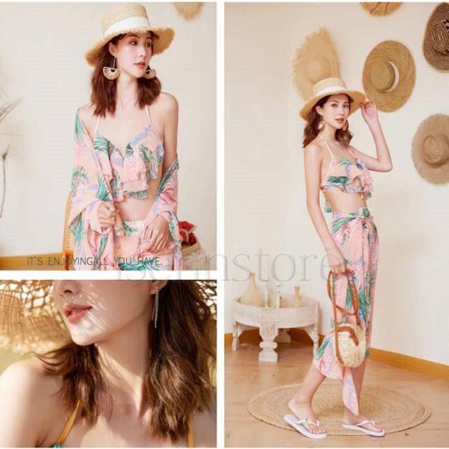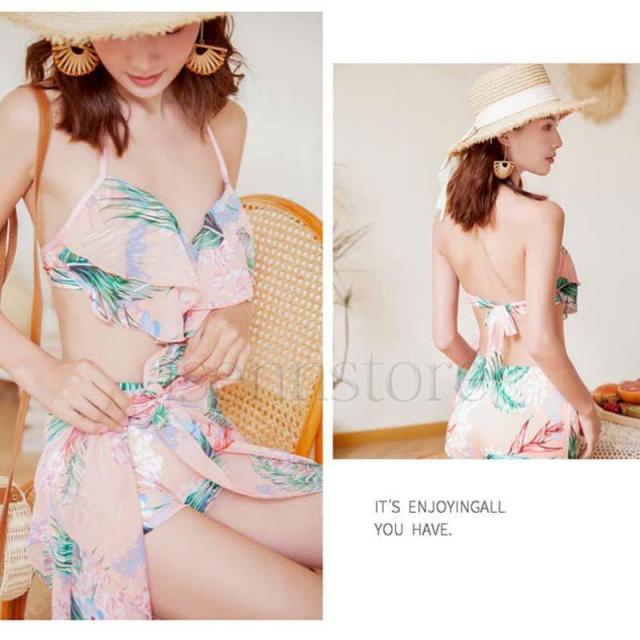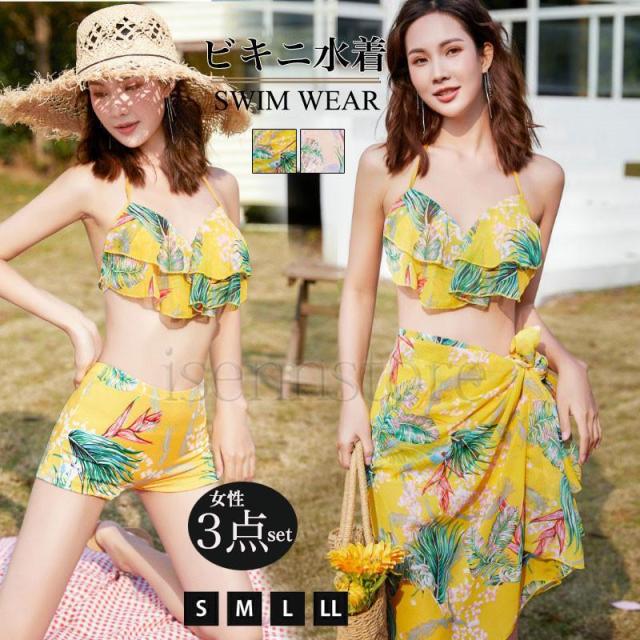 レディース 3点セット 水着 ビキニ 体型カバー ワイヤービキニ セパレート水着 フリル 花柄 ボタニカル タオル付 セクシー かわいい プール ビーチ ママ水着