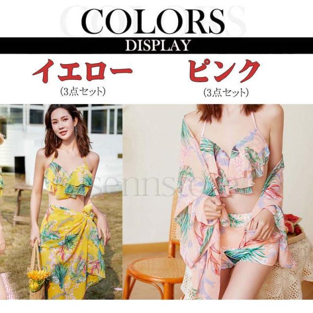 レディース 3点セット 水着 ビキニ レディースファッション 続々入荷中 イエロー ピンク ブラウン S M L XL
