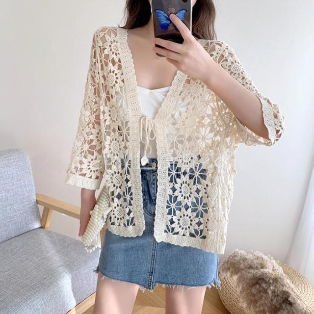 カーディガン 透かし編みカーディガン レディース 夏 レース ゆったり 夏コーデ おしゃれ Vネック 透け感 薄手 トップス 前開き 春 アウター