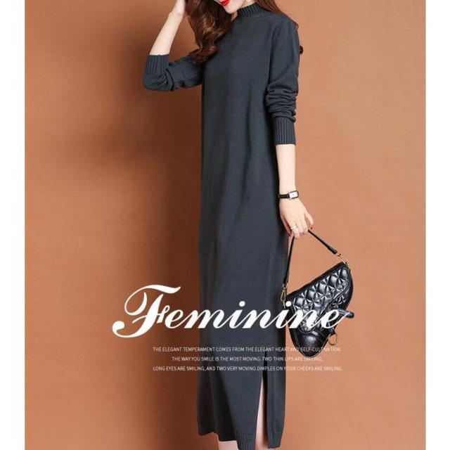 ニットワンピース ワンピース 冬 ロングワンピース レディース タートルネック 秋冬 ラウンドネック ニット ハイネック