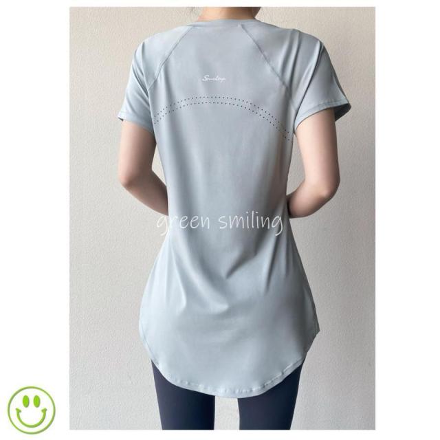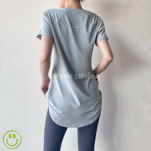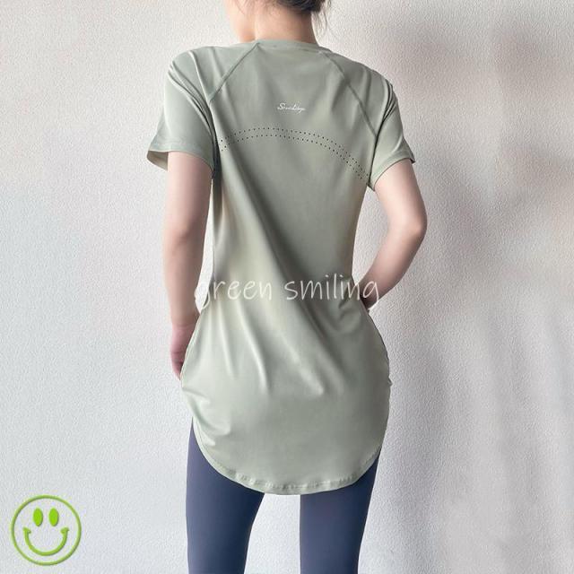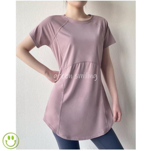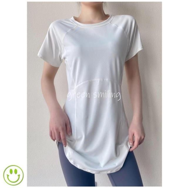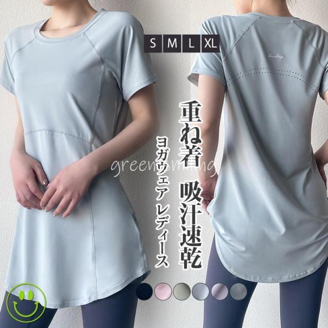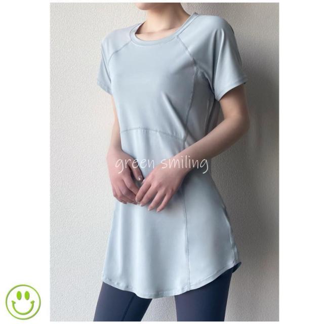 ヨガウェア レディース トップス 長め ロング丈 Tシャツ 半袖 ホットヨガ フィットネス ヨガ ジム トレーニング 重ね着 吸汗速乾 スポーツ