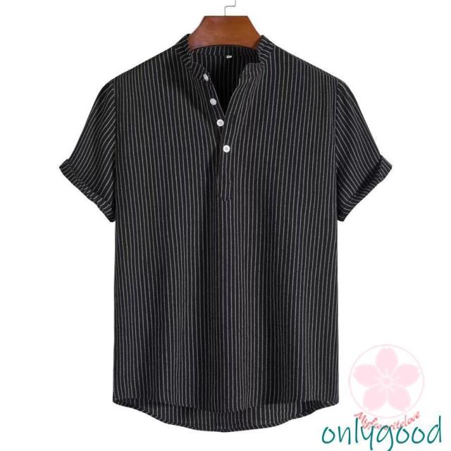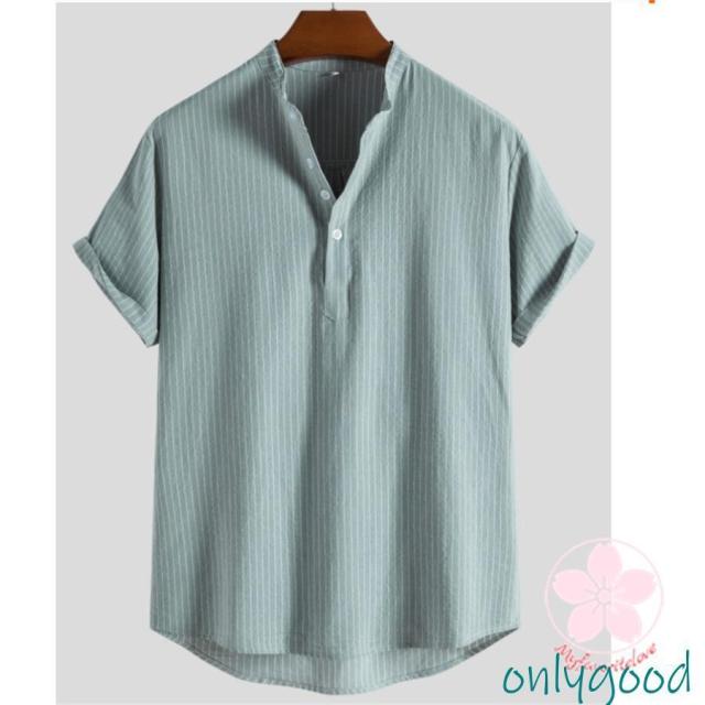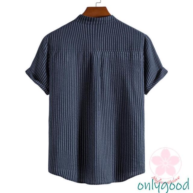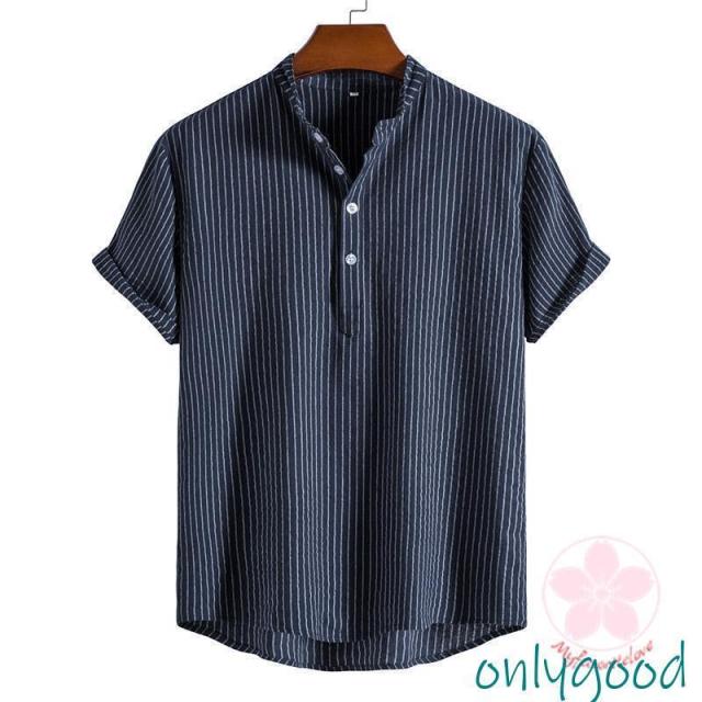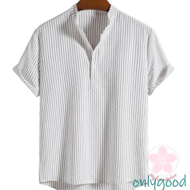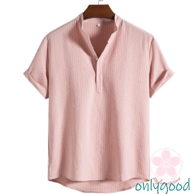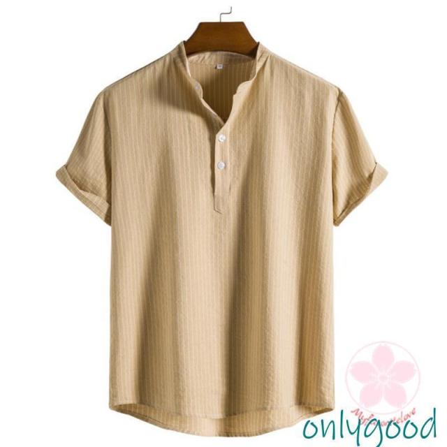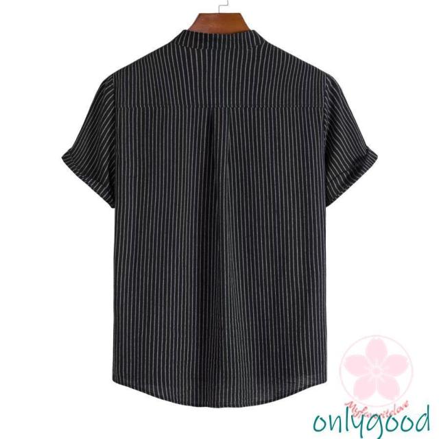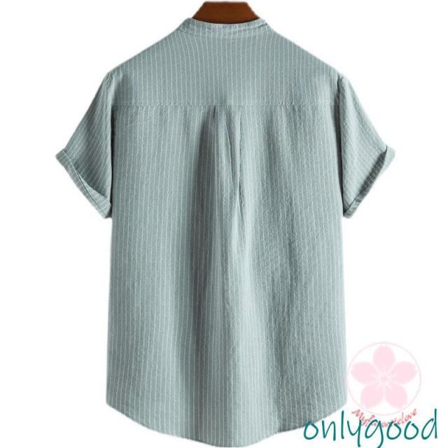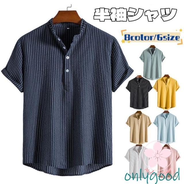 シャツ カジュアルシャツ メンズ リネン 半袖 ストライプ 通勤 クールビズ 綿麻風 無地 涼しい 薄手 トップス 春夏 おしゃれ ゆったり シンプル