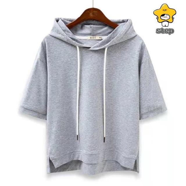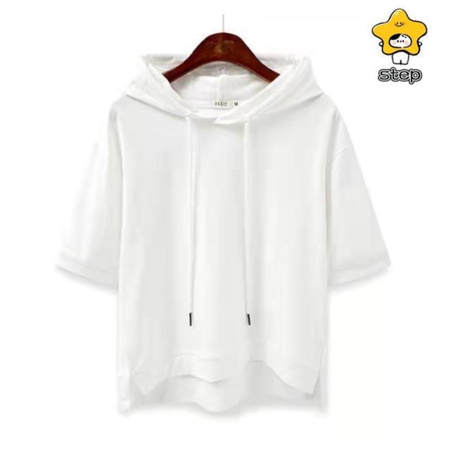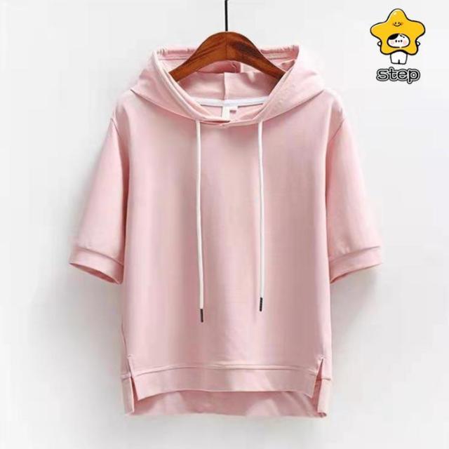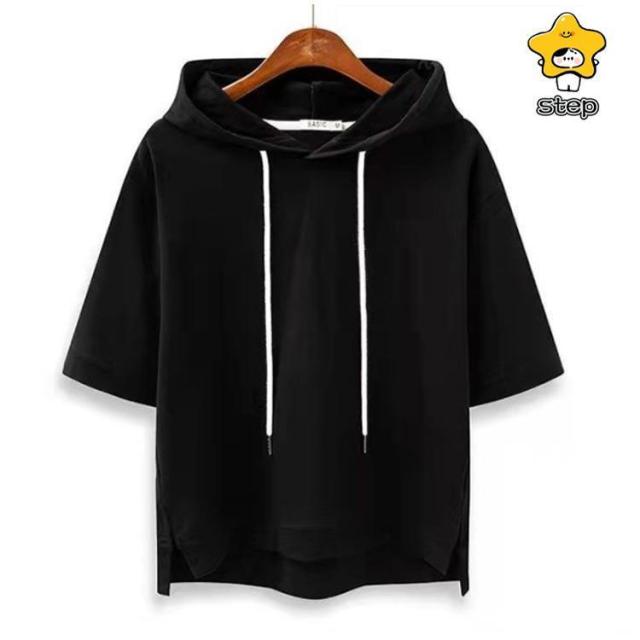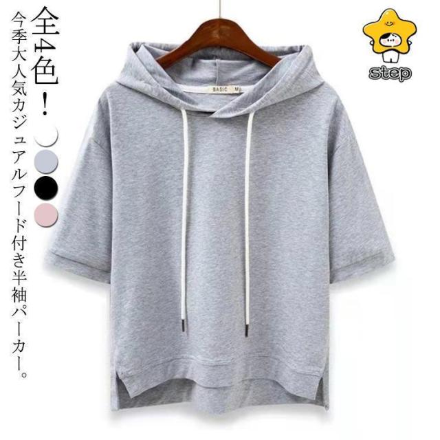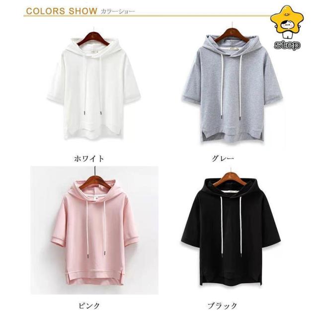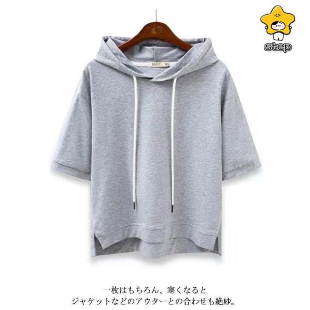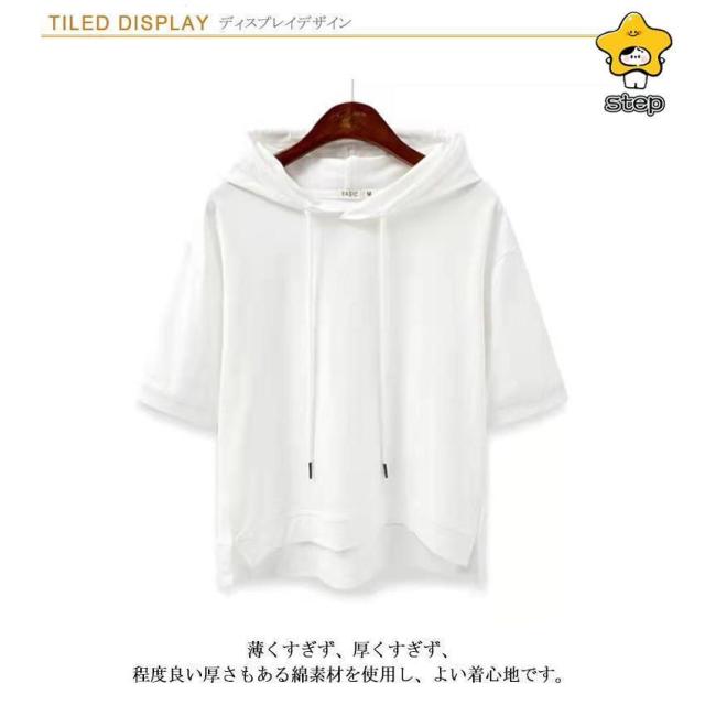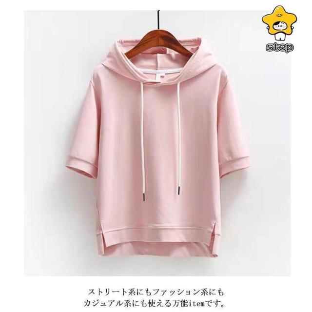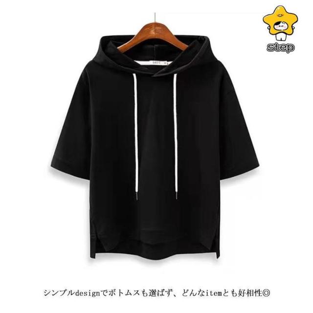 tシャツ パーカー レディース フード付き 半袖パーカー 5分袖パーカー プルオーバー 薄手 トップス フード付きtシャツ スリット 夏用
