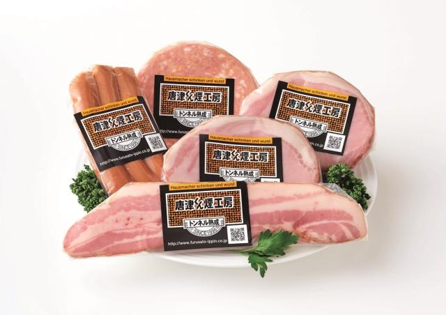 燻しベーコンステーキ;「九州産ブランド豚のバラ肉をトンネル内で長期熟成。国産の山桜チップを使用し長時間燻すことで、香味豊かに仕上げました。扱いやすいステーキタイプです。あらびきウィンナー;プレーンな粗挽きタイプのウインナー。肉本来の旨みとスモークの芳醇な香り、ジューシーな味わいをお楽しみいただけるウインナー人気NO.1の商品です。