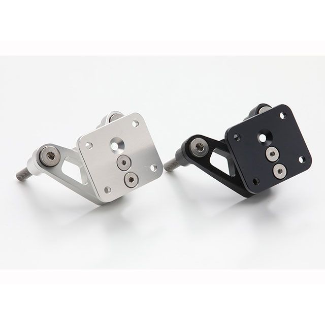 ハンドルブラケットに高剛性のアルミ削り出しステーを共締めして取り付けます。センターの位置にすることにより視認性を重視しています。専用台座がヒンジ仕様の可動式のため、ナビ画面の角度を見やすい位置に調節できます。専用台座自体の取付穴位置を変更することで、ナビ画面の位置も調節できます。