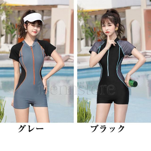 半袖 オールインワン フィットネス水着 水着 続々入荷中 グレー ブラック L XL 2XL 3XL 4XL