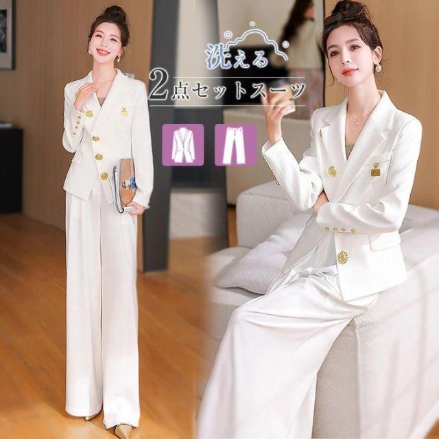 パンツスーツ セットアップ 2点セット スーツ セットアップ パンツスーツ 人気 ホワイト ブラック S M L XL 2XL