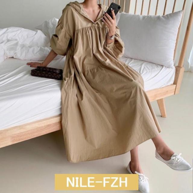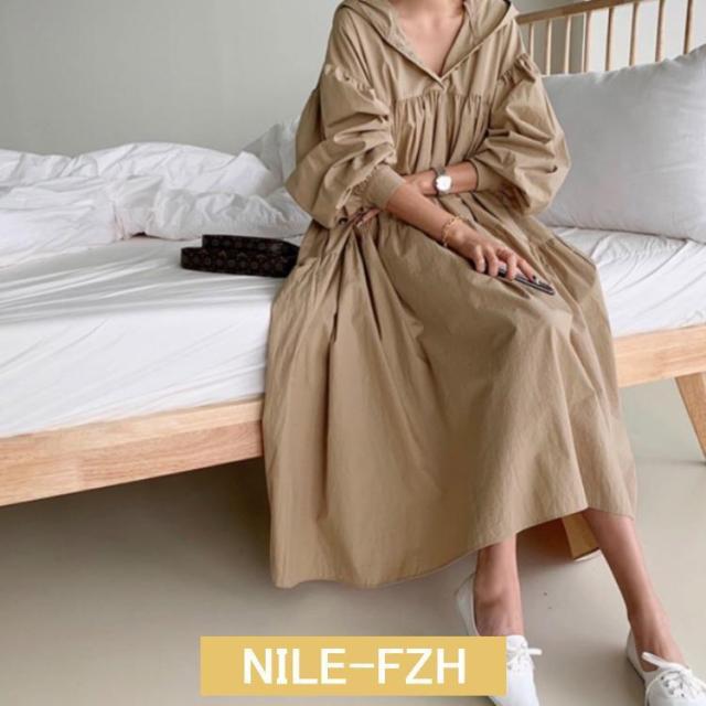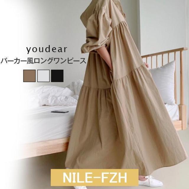 シャツワンピース マキシワンピース レディース フード付き パーカー風 春 長袖 ゆったり ロングワンピース 秋 夏 綿 ロングシャツ
