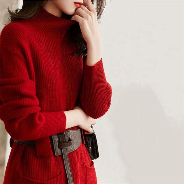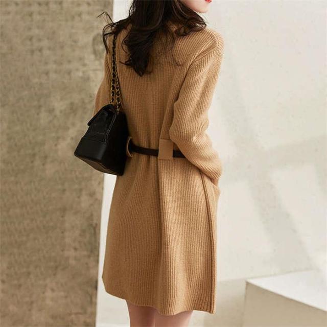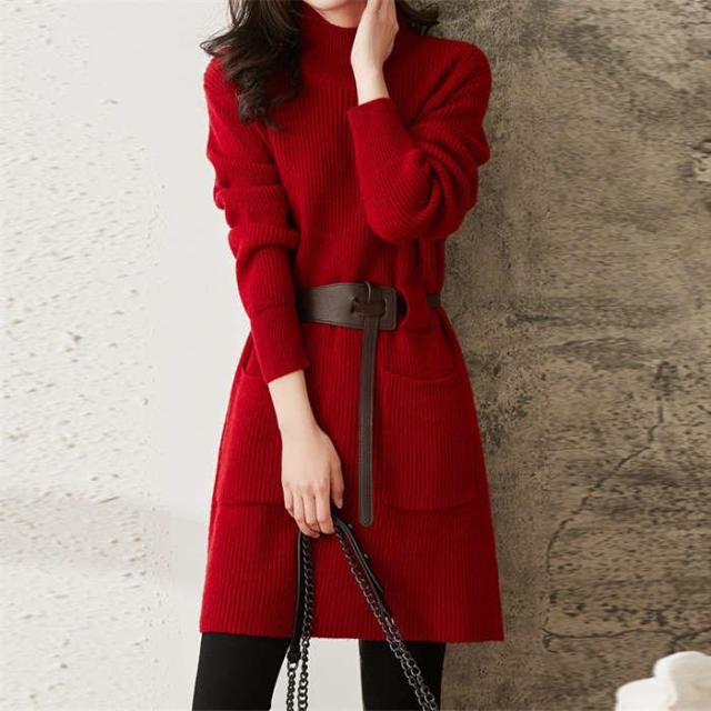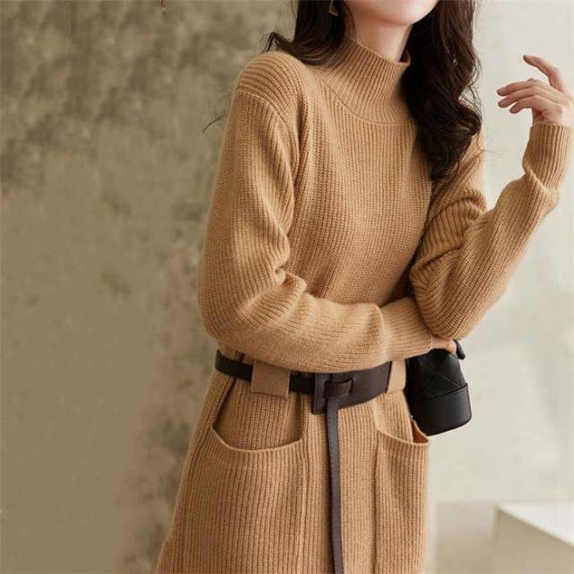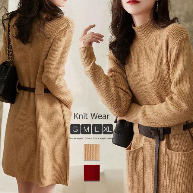 ワンピース ニット レディース チュニック 長袖 ロング丈セーター トップス 秋冬 ニットソー ニットワンピース ハイネック プチハイネック 膝丈ワンピース きれいめ インナー ニットワンピ