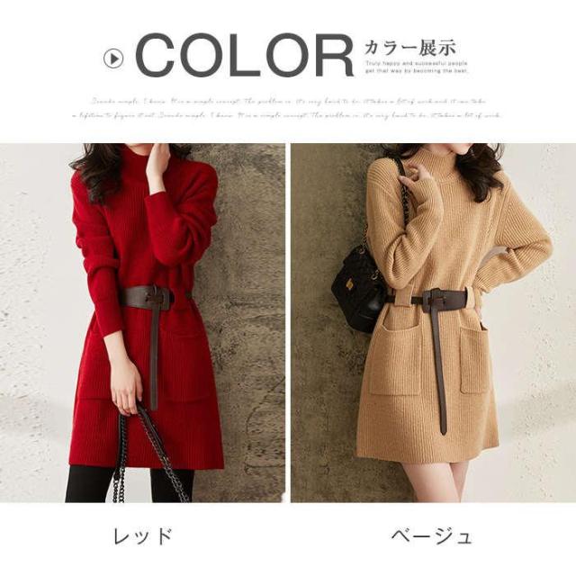 ワンピース ニット レディース チュニ ワンピース 新登場! ベージュ レッド S M L XL