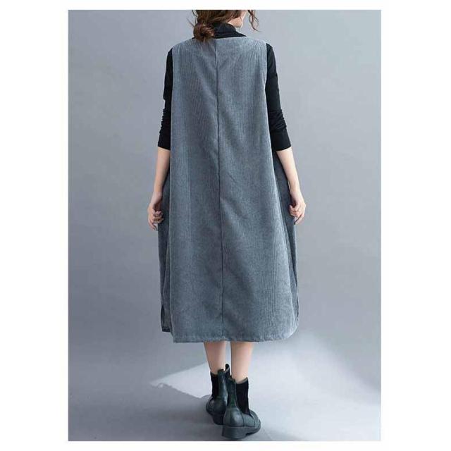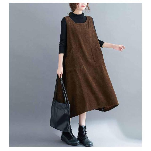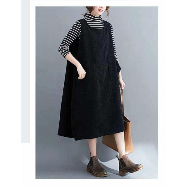 ジャンパースカート サロペットスカート コーデュロイワンピース ノースリーブ レディース ロング丈ワンピー ポケット付き オールインワン ゆったり レイヤード