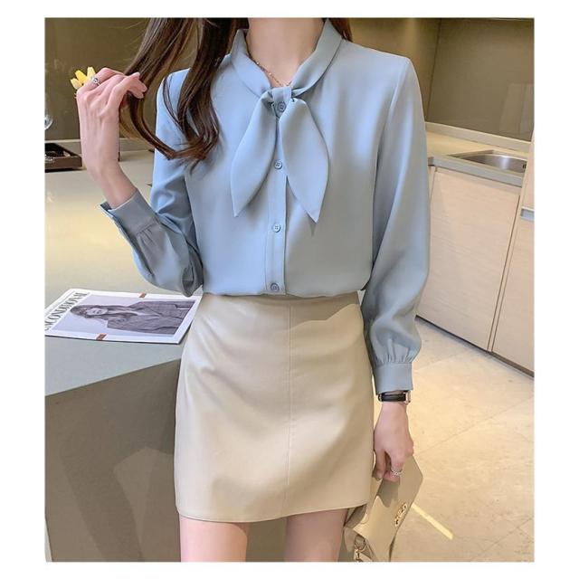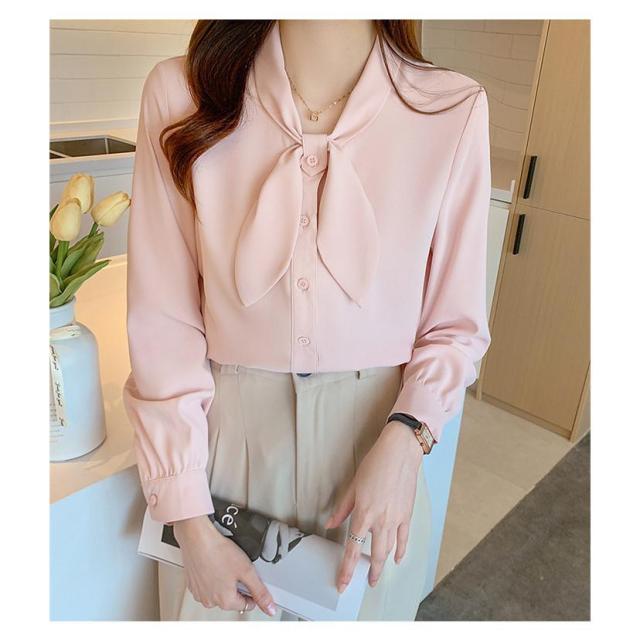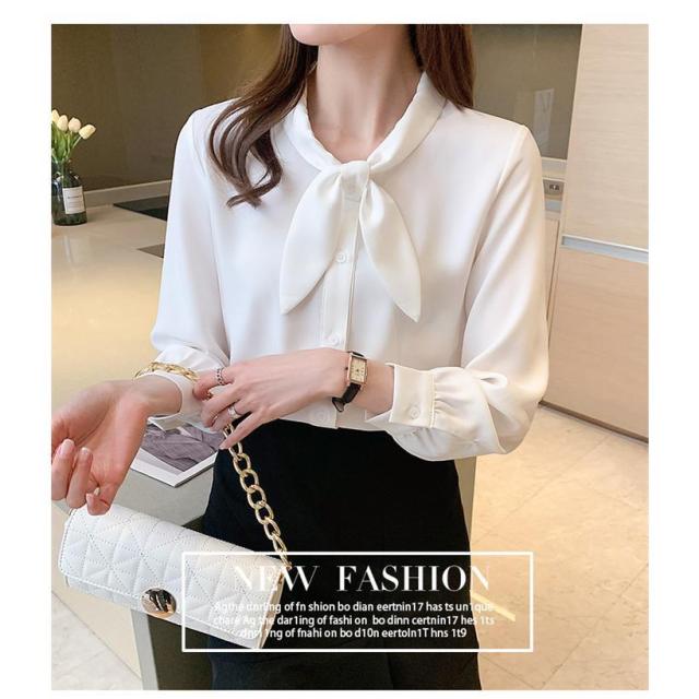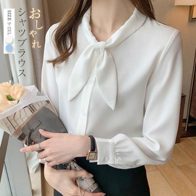 ブラウス シャツブラウス レディース 40代 長袖 オシャレ リボン付き 春 夏 オフィス トップス 無地 可愛い 韓国風 大人 上品 フォマル ゆったり 30代 通勤