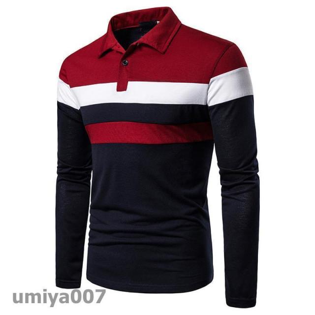 ポロシャツ メンズ トップス 長袖 3色切り替え トレンド ゴルフウェア スポーツ 春秋 ゴルフ シャツ カジュアル 大きいサイズ おしゃれ 紳士服