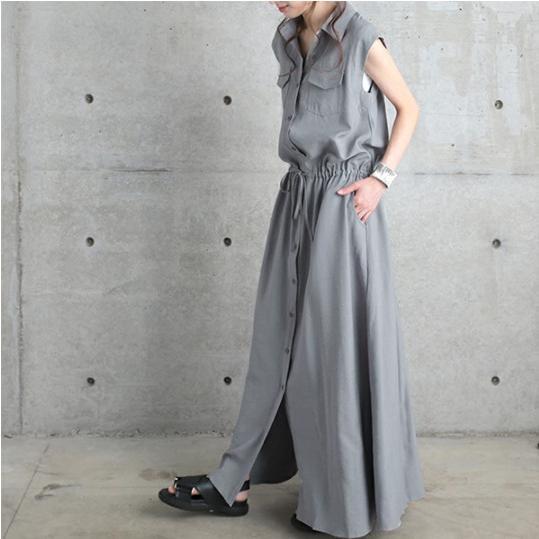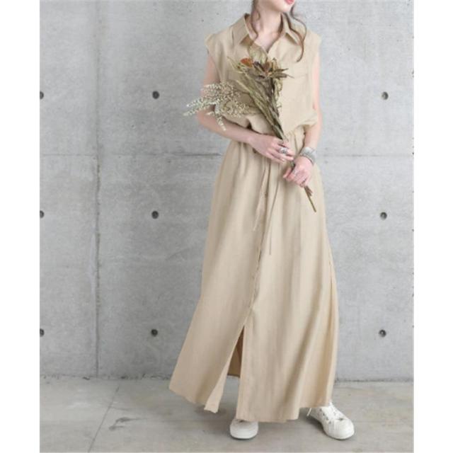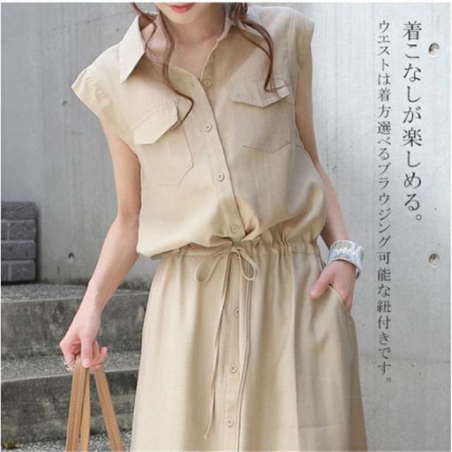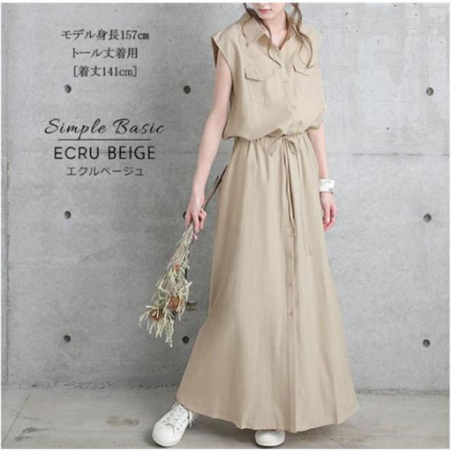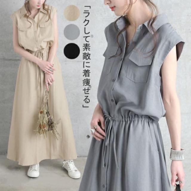 シャツワンピース ワンピース レデイーズ 春 サマーワンピース 無地 ロングワンピース ノースリーブ 着やせ おしゃれ 大人 可愛い 体型カバー通勤