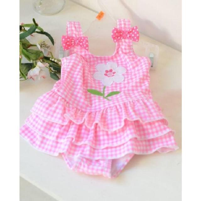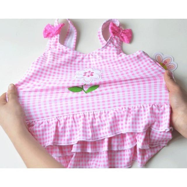 水着 キッズ 女の子 スイム用品 スイムアイテム ワンピースタイプ ギンガムチェック リボン 花刺繍 フリル ノースリーブ 夏 リゾート タンクトップ