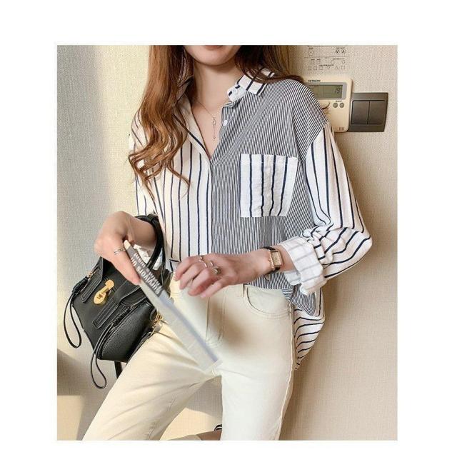 シャツ レディース 長袖 春 シャツブラウス きれいめ 40代 オシャレ ブラウス ボーダー柄シャツ トップス リネンシャツ 大人 通勤 綿麻混 30代 50代 ゆったり