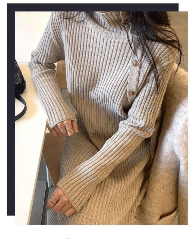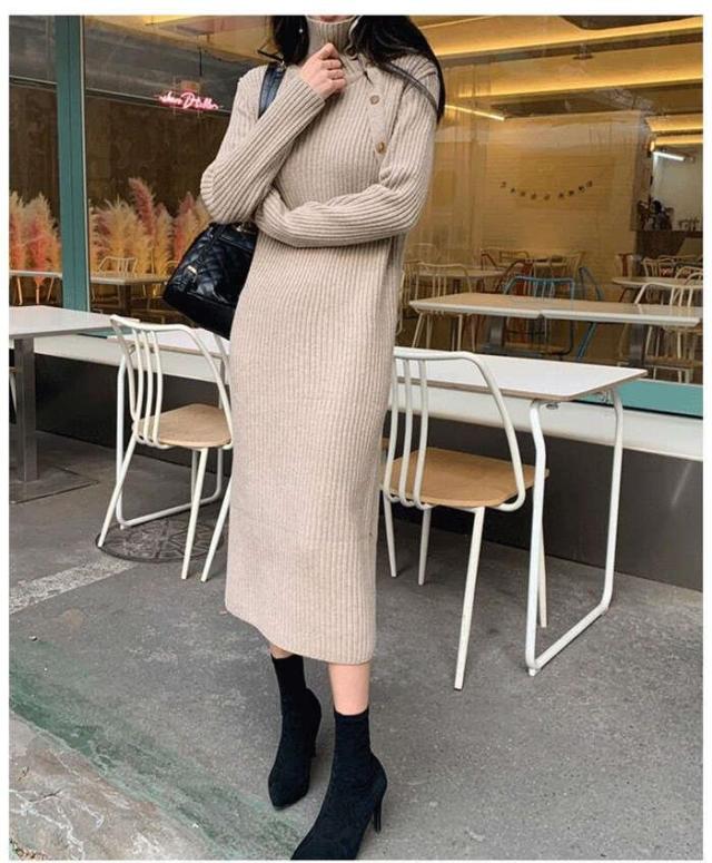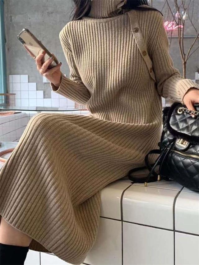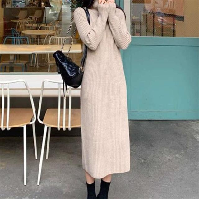 ニットワンピース レディース ワンピース 秋冬 きれいめ ハイネック ロング ニット ワンピ リブ リブニット ニットワンピ 大人 長袖 ロング丈 ミモレ丈 上品 無地 洗える 着 せ 袖あり