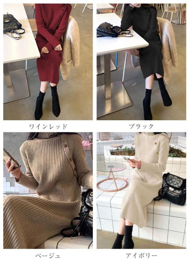 ニットワンピース レディース ワンピー レディースファッション 新登場! ワインレッド ブラック ベージュ アイボリー