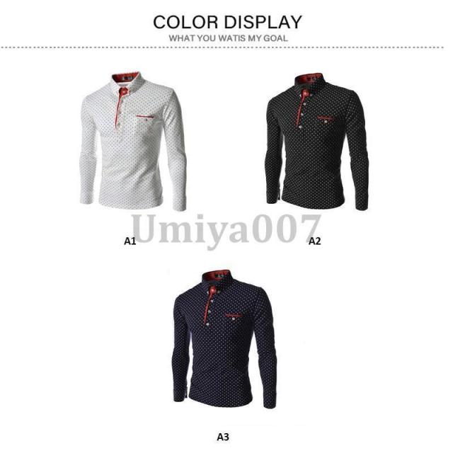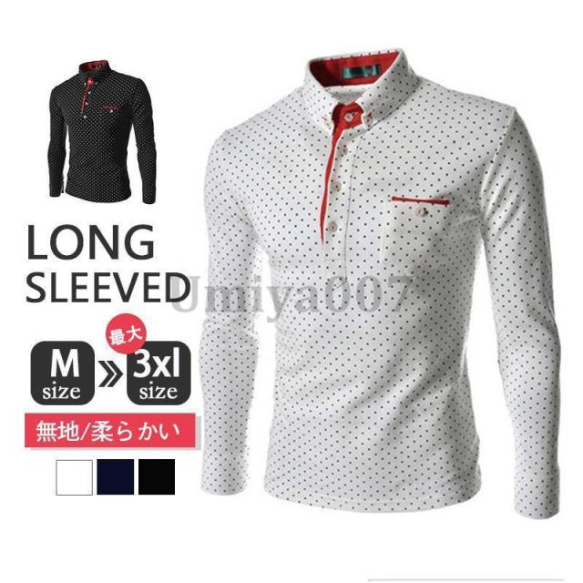 ゴルフシャツ ゴルフウェア ゴルフポロシャツ メンズ トップス 大きいサイズ 長袖 水玉柄 トレンド おしゃれ スポーツ ゴルフ シャツ 紳士服 春秋