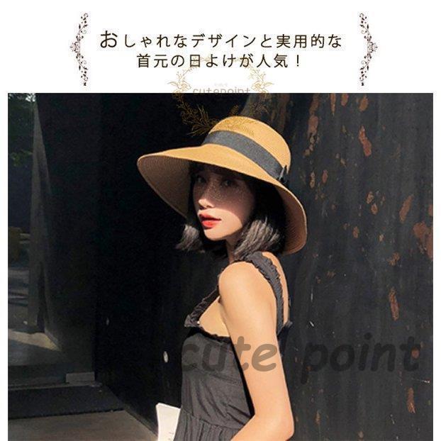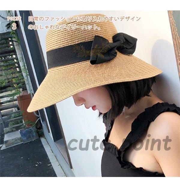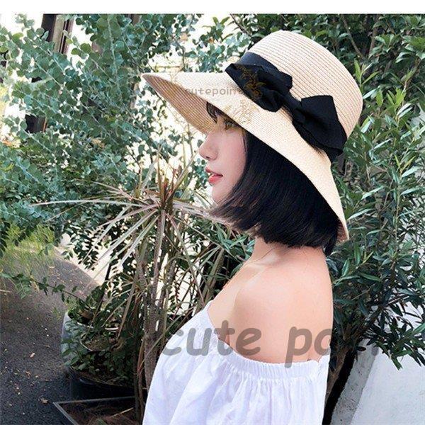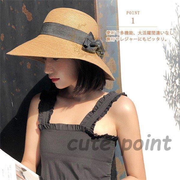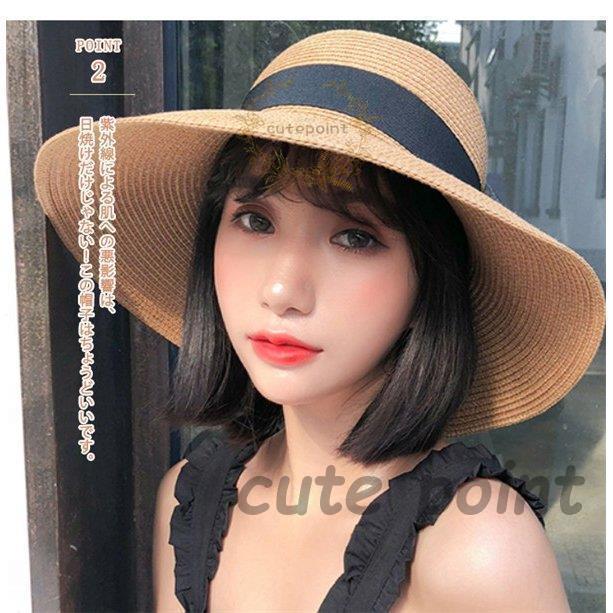 麦わら帽子 レディース 折りたたみ サイズ調整可 つば広 リボン ペーパーストローハット 日よけ帽子 秋冬 おしゃれ