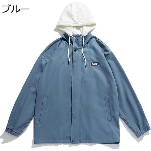 ジャケット メンズ 秋 ジャンパー カジュアル フード付き コート 長袖 無地 防風 アウター スタジャン ウィンドブレーカー ブルゾン