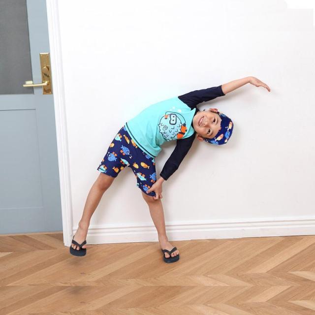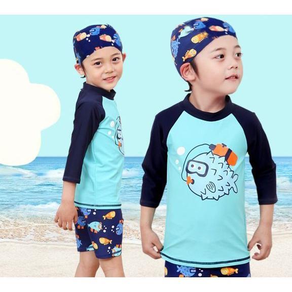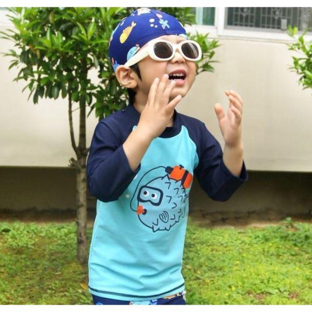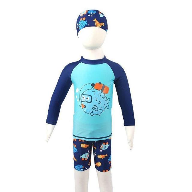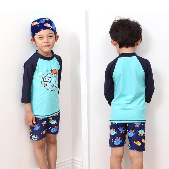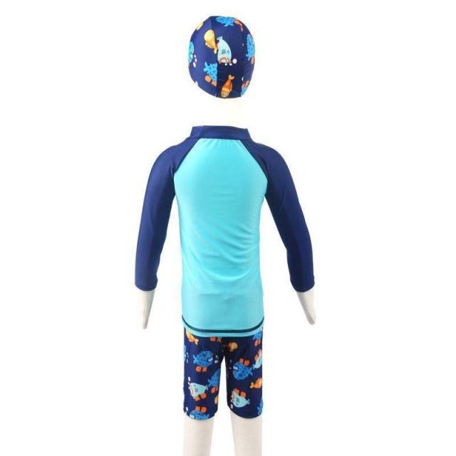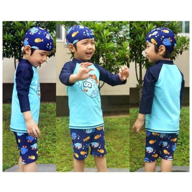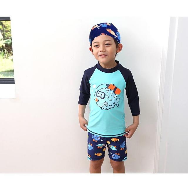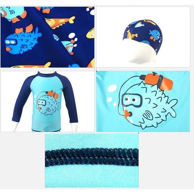 スイムウエア 子供用 水着 3点セット ラッシュガード 短パン スイムキャップ キッズ ベビー 男の子 長袖 プルオーバー スイムスーツ セットアップ