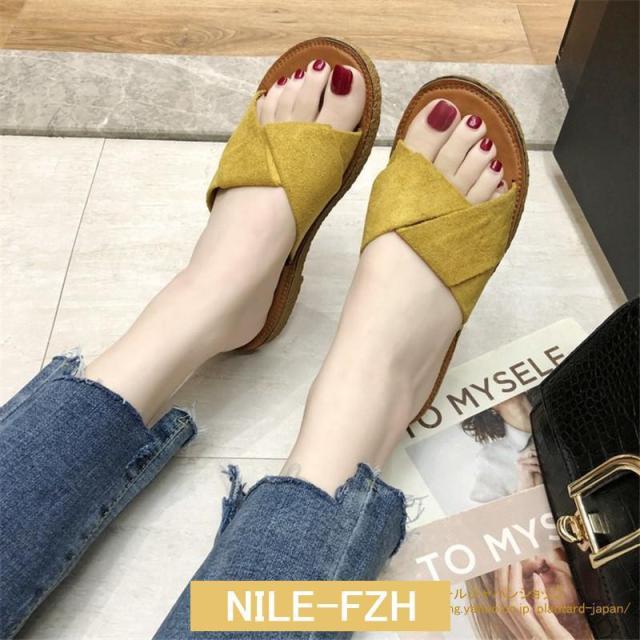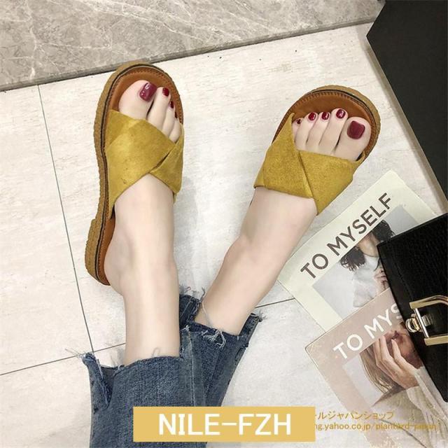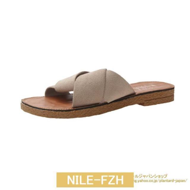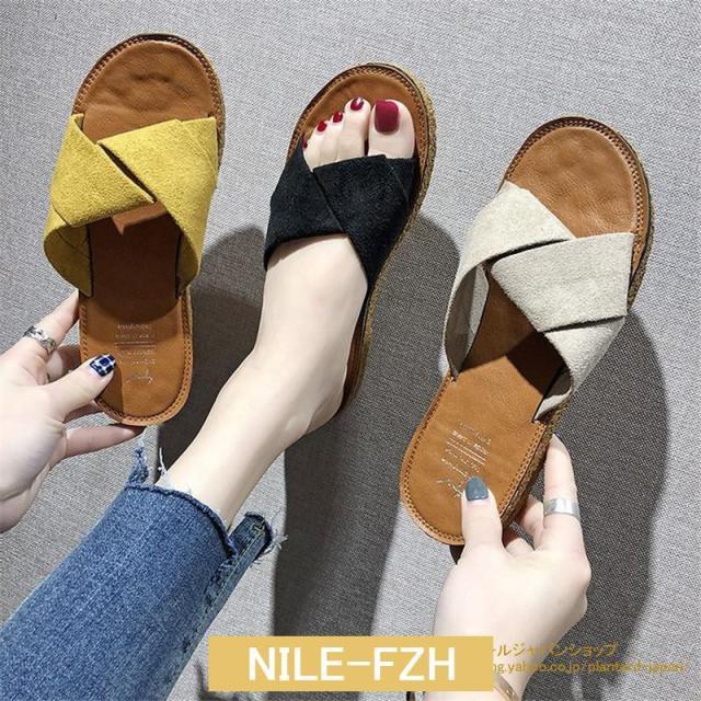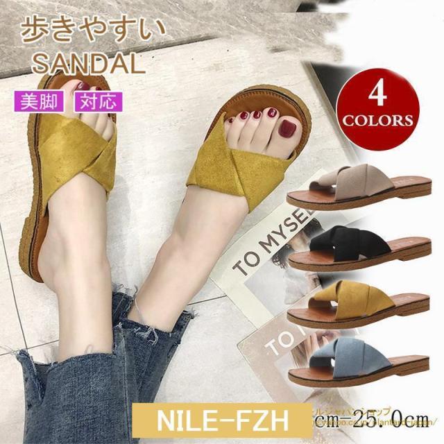 サンダル ぺたんこ レディース フラット クロスストラップサンダル コンフォート ビーチサンダル スリッパ 可愛い 歩きやすい 海 軽量