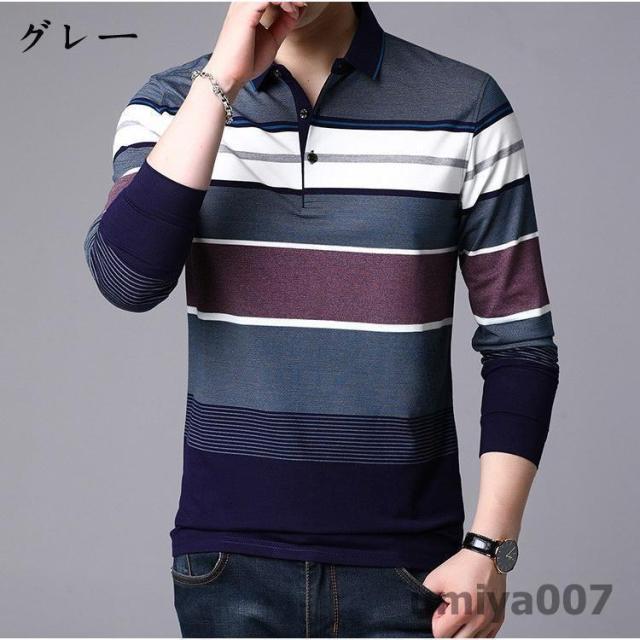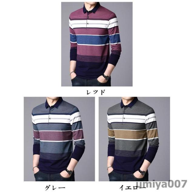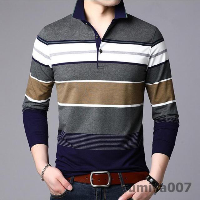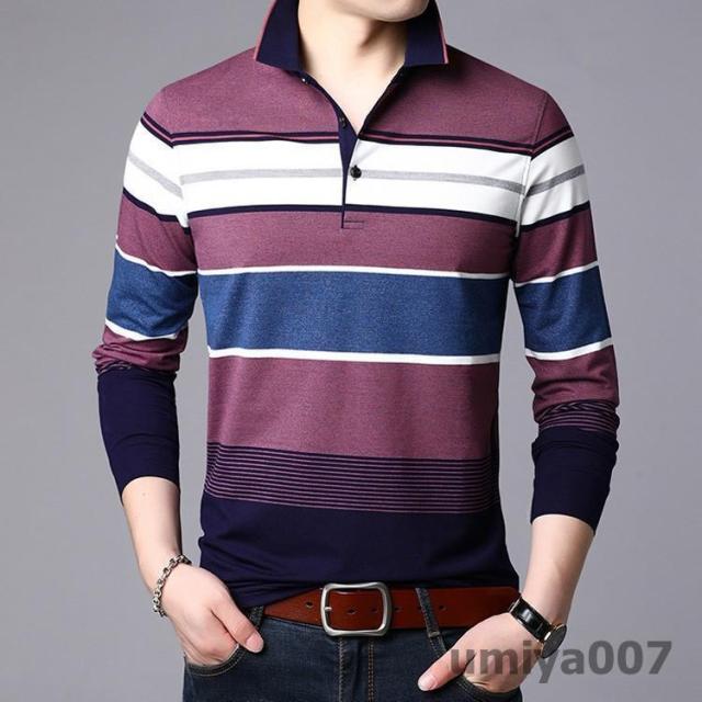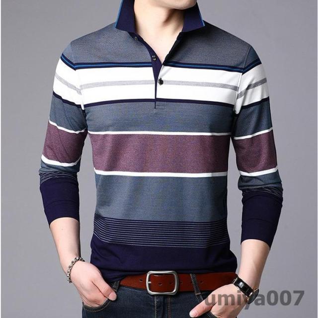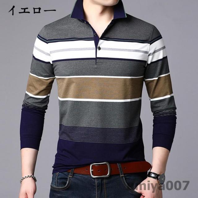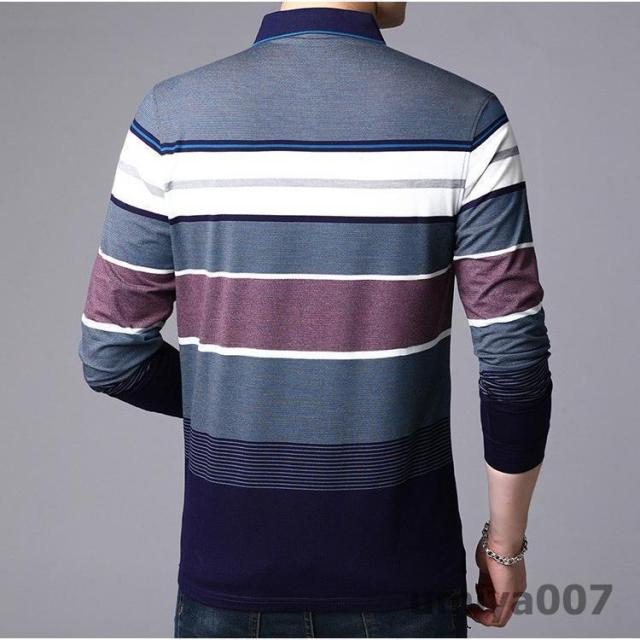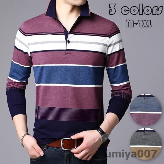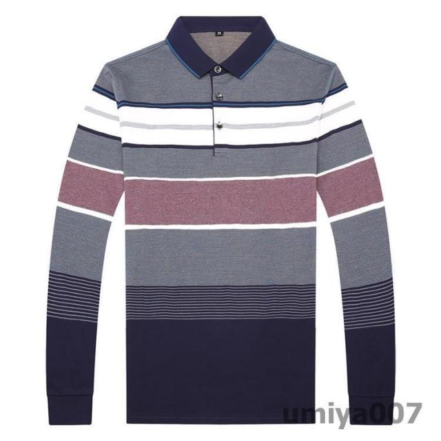 ポロシャツ メンズ トップス 大きいサイズ 長袖 配色切り替え ボーダー柄 トレンド ゴルフウェア おしゃれ スポーツ 秋冬 シャツ 紳士服 カジュアル ゴルフ