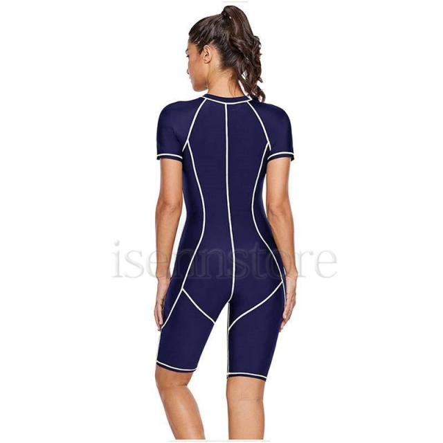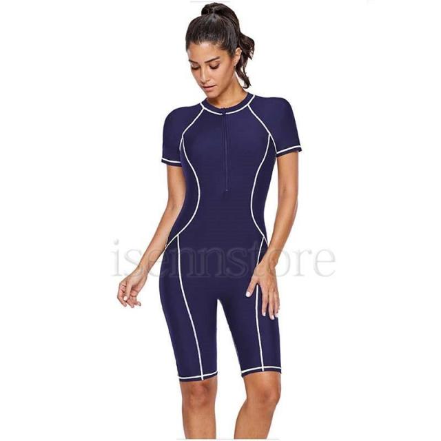 レディース オールインワン フィットネス水着 体型カバーフロントジップ パッド付 ハーフパンツ 競泳 スイムウェア S~3XL 女性用 ビーチ サーフィン 水泳 半袖