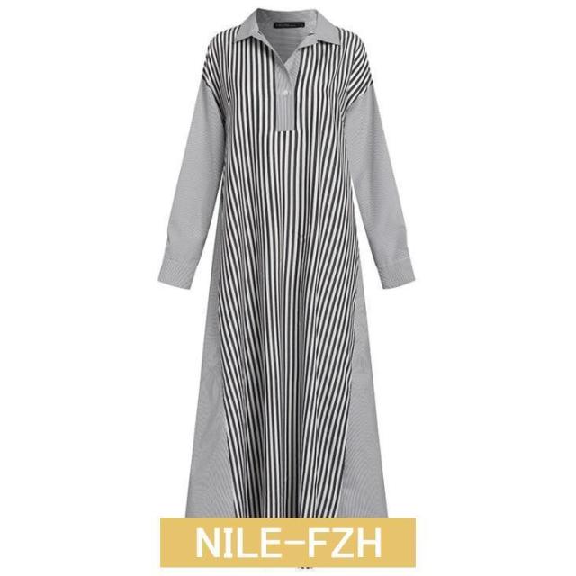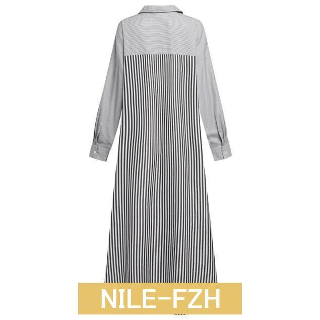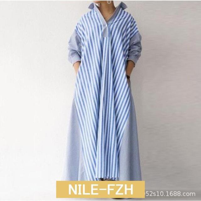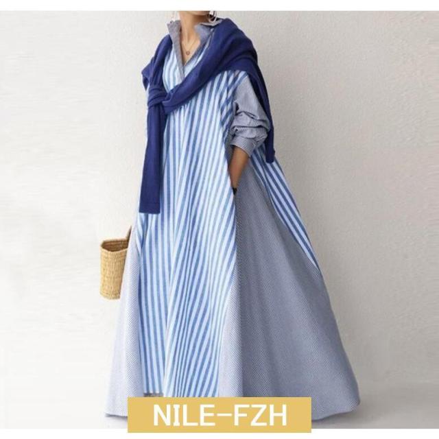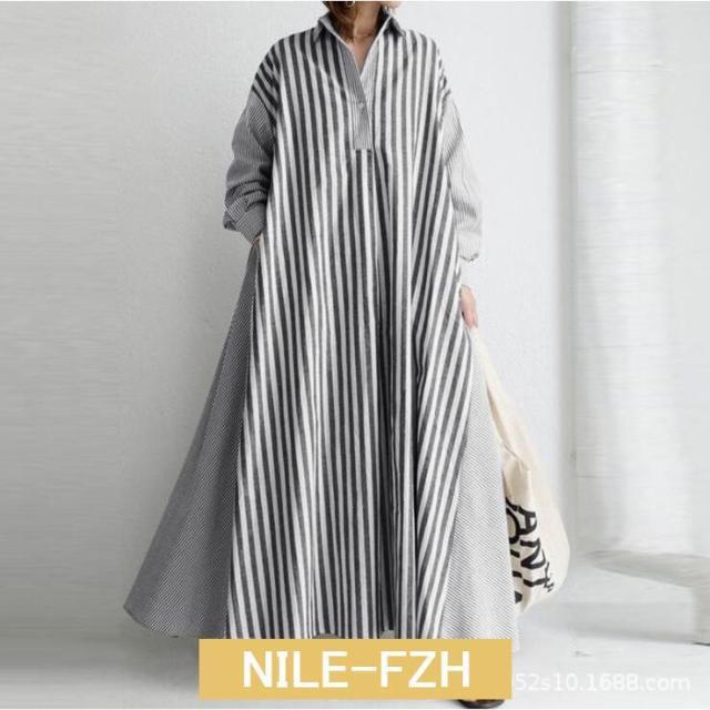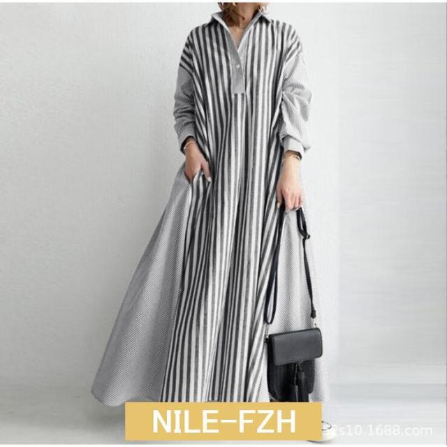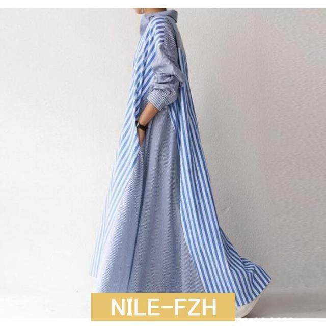 シャツワンピース ワンピース レディース ロングワンピース 長袖 秋 秋冬 春 超ロング ロング丈 マキシ丈 体型カバー ストライプ柄 ゆったり 40代