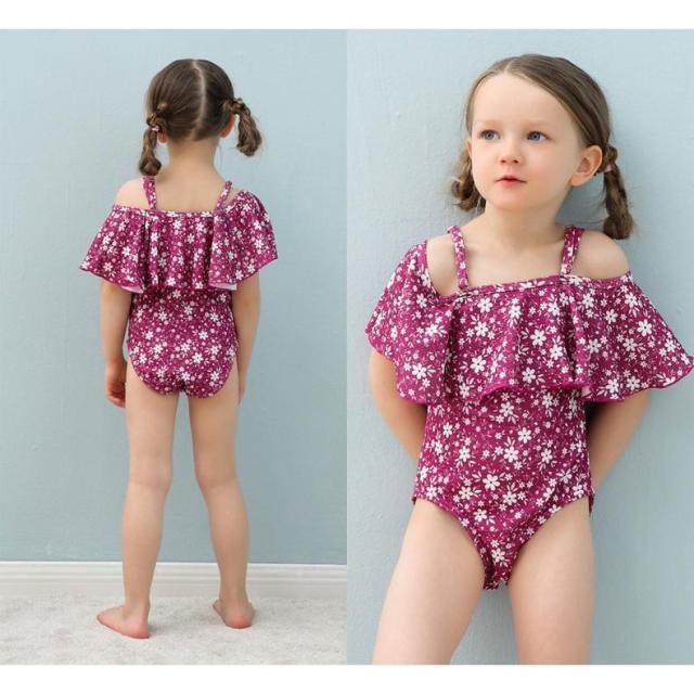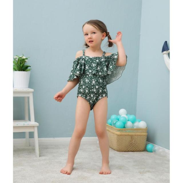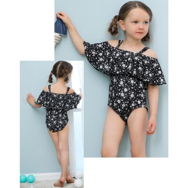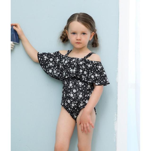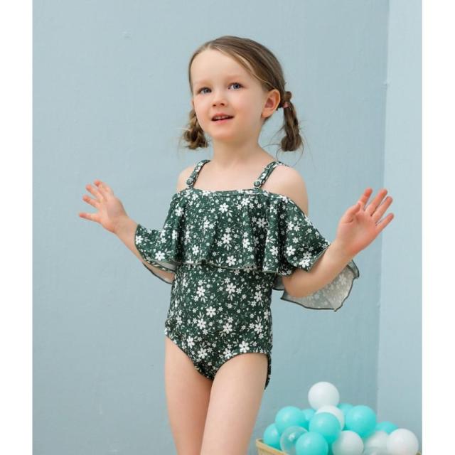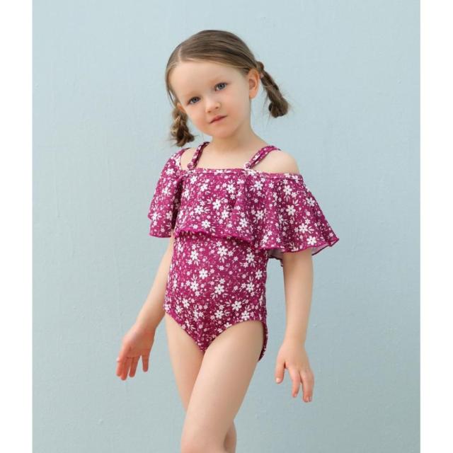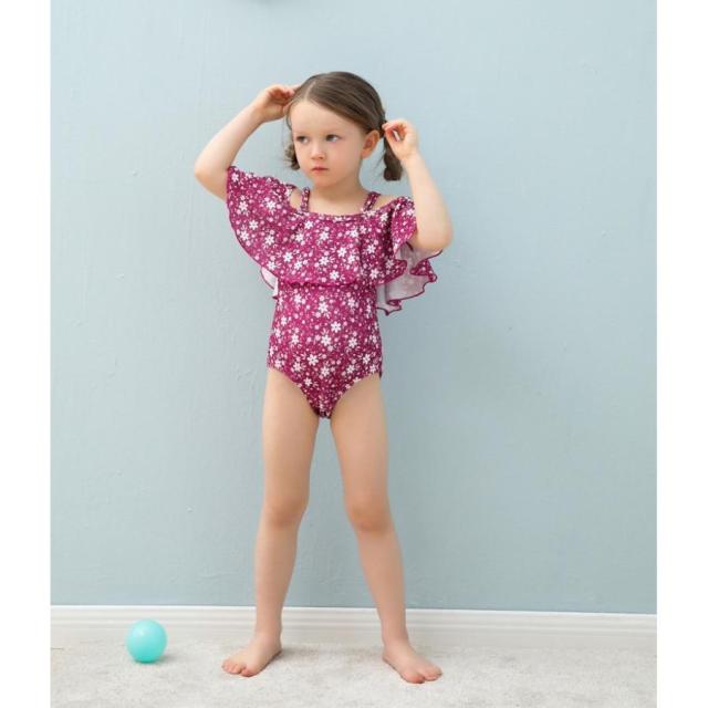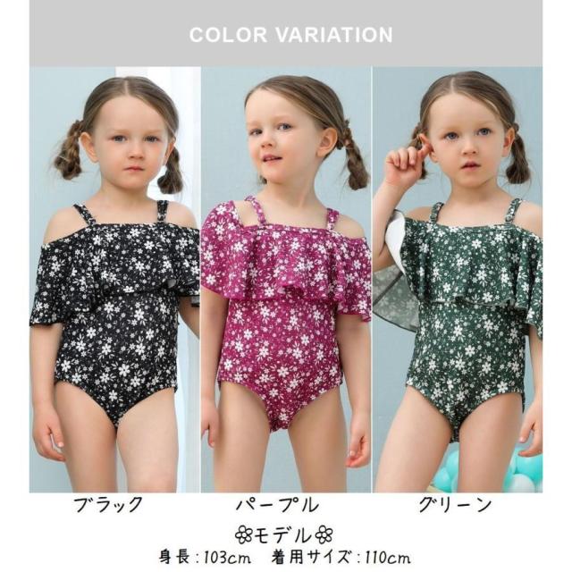 子供用水着 ワンピースタイプ オフショルダー フレア フリル スイムウェア キッズ 女の子 ガールズ 女子 花柄 海水浴 ビーチ 水遊び リゾ プール