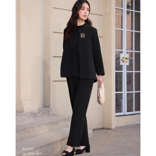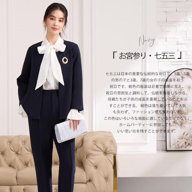 ママセットアップ パンツ 卒業式 40代 50代 入学式 ママスーツ ワイドパンツ 祖母 スーツ 体型カバー フォーマル セレモニースーツ 紺 結婚式 暖か 黒