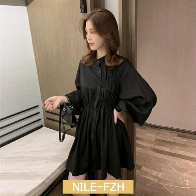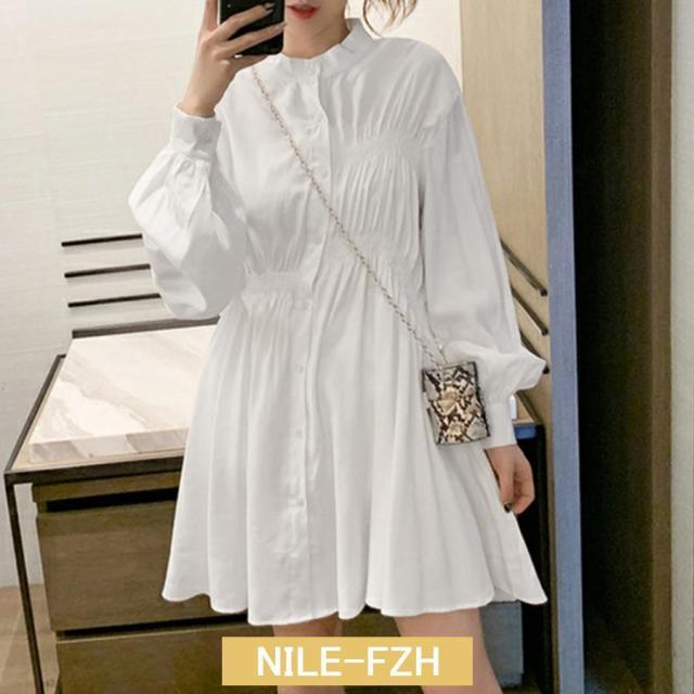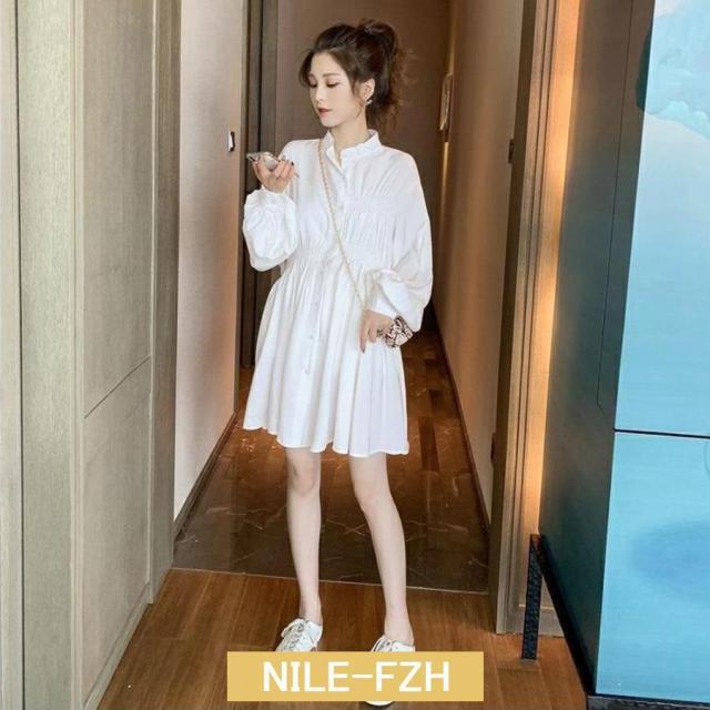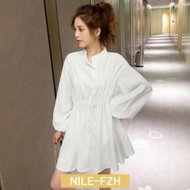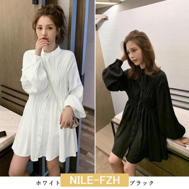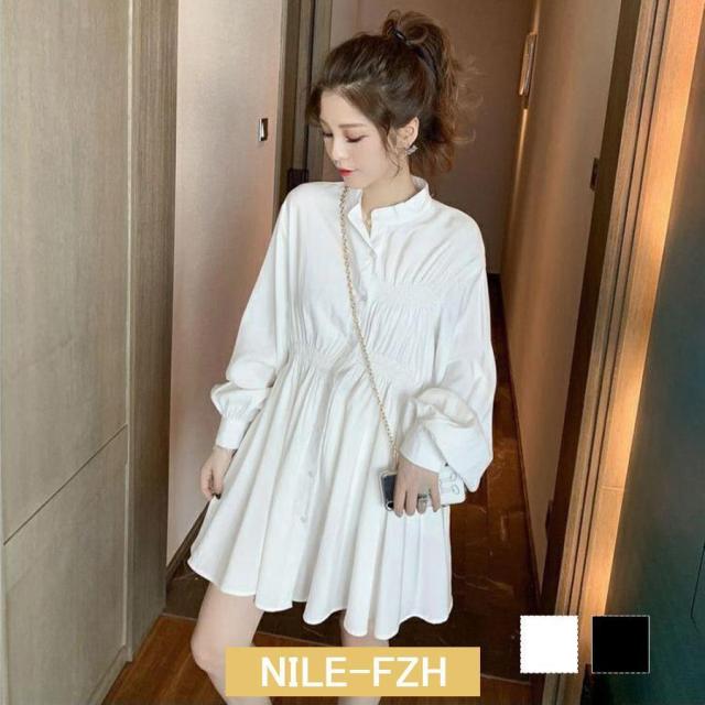 ウエストマーク シャツワンピース レディース チュニックワンピ 白 春夏長袖 シャツブラウス ミニワンピース