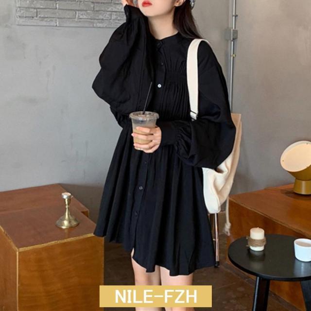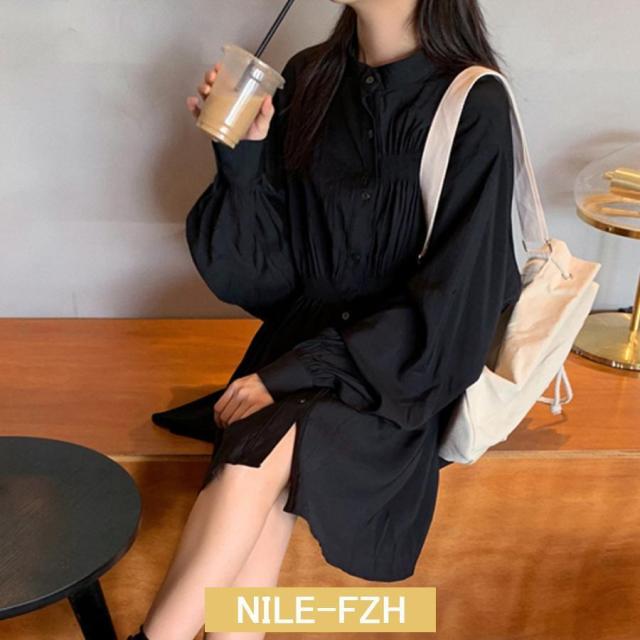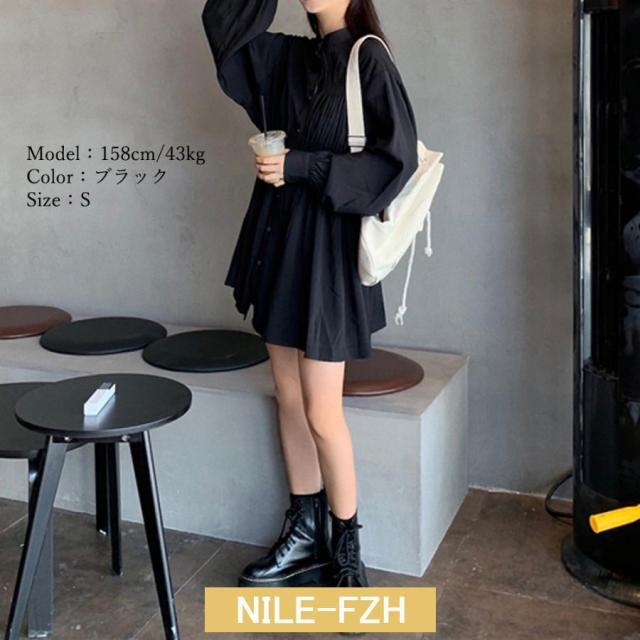 ウエストマーク シャツワンピース レデ ブラック ホワイト L S M
