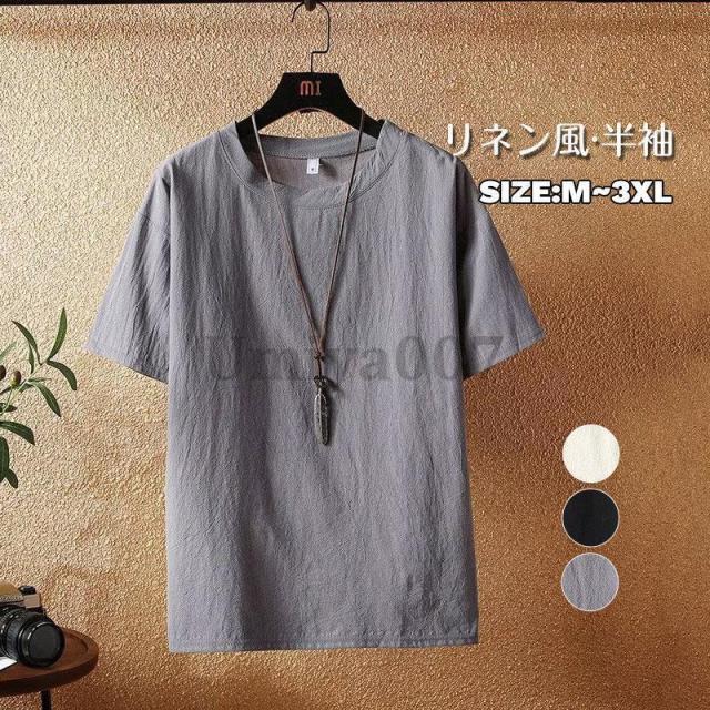 tシャツ 無地 メンズ 半袖 リネン風 トップス ポロシャツ 通販 ブラック ホワイト グレー M L XL 2XL 3XL