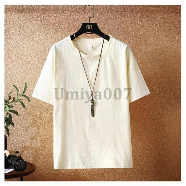 tシャツ 無地 メンズ 半袖 リネン風 シンプル カットソー インナー トップス 薄手 おすすめ サマーTシャツ