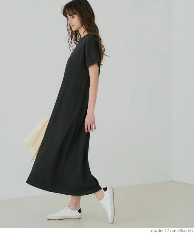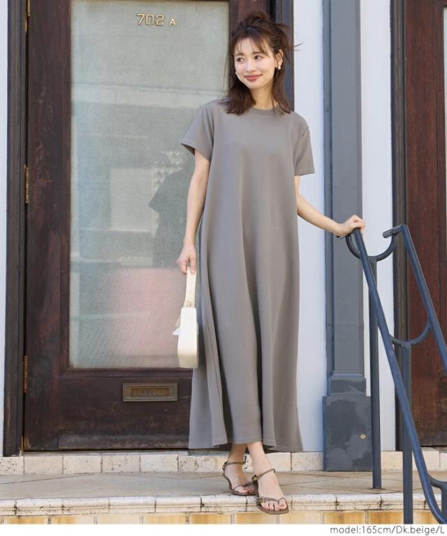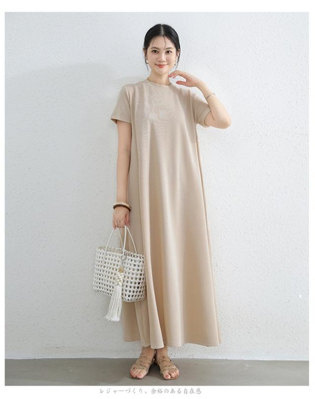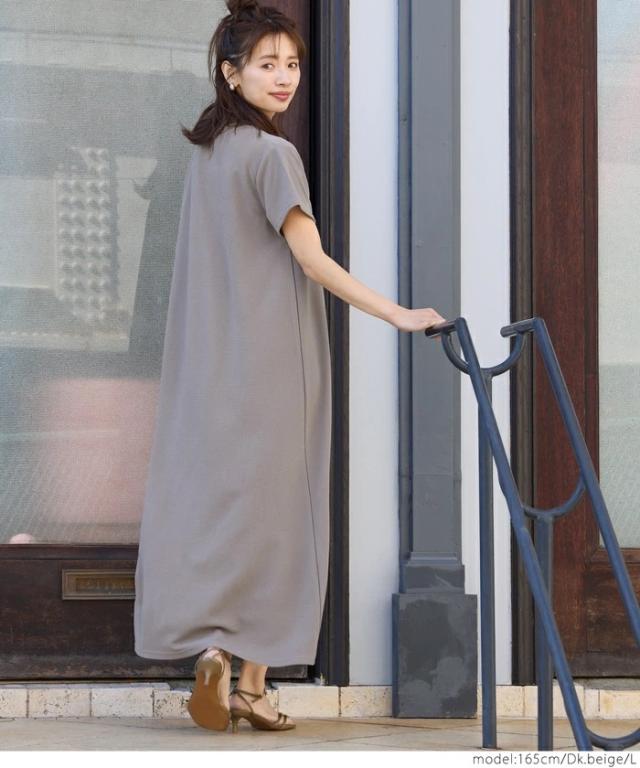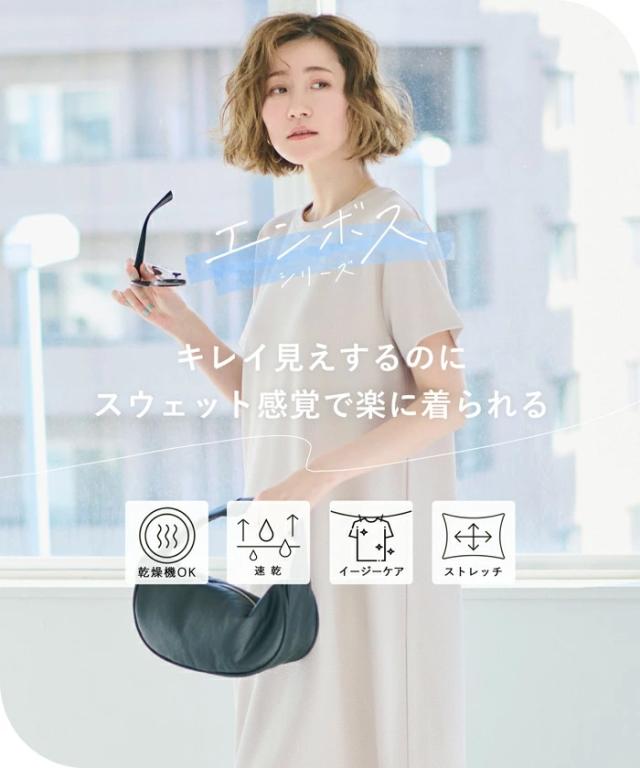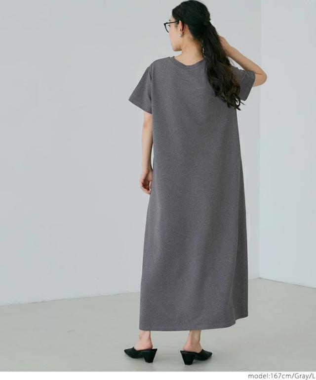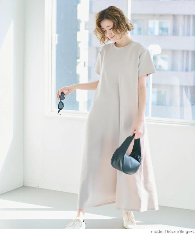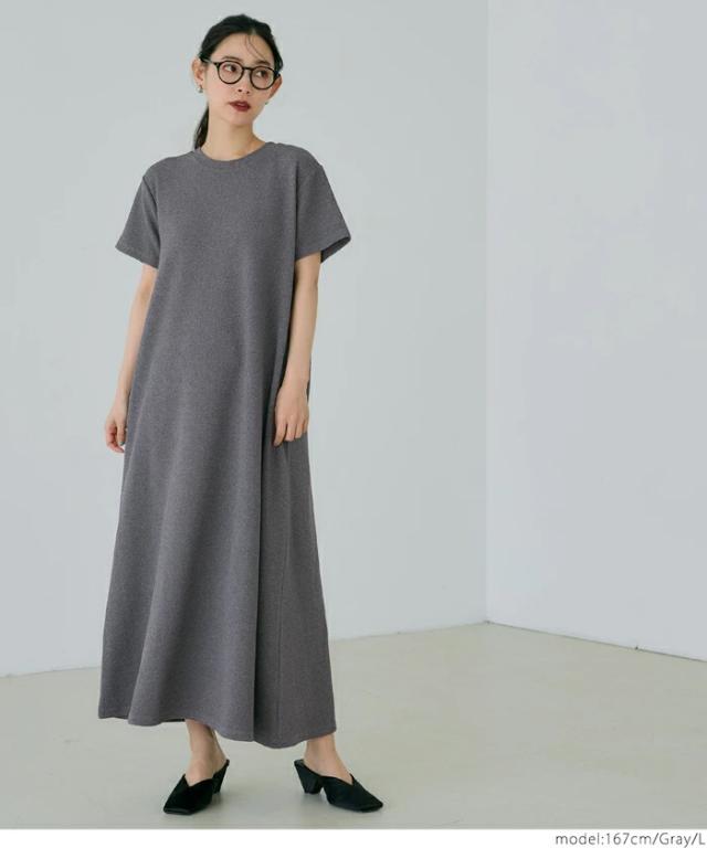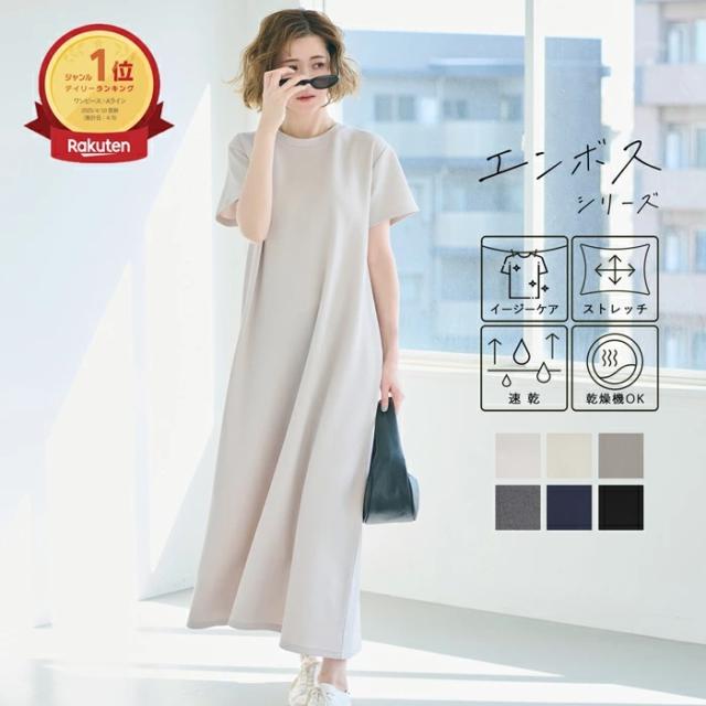 レディース ワンピース ロングワンピース ストレッチ 速乾 イージーケア プルオーバー エンボス エンボス加工 凹凸 体型カバー マタニティ 半袖 丸首 エンボス半袖マキシワンピース