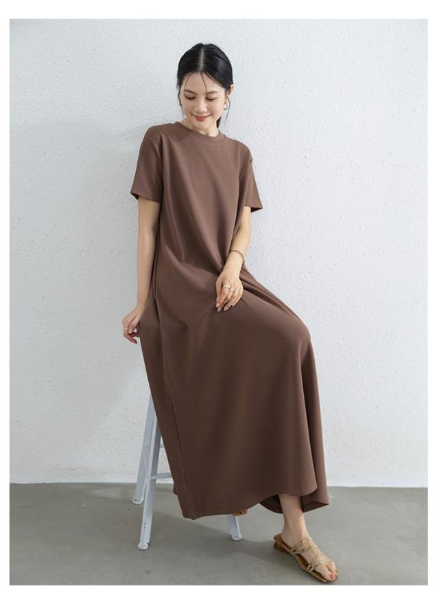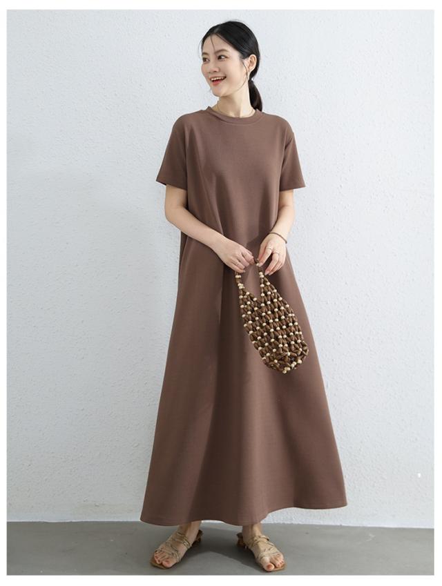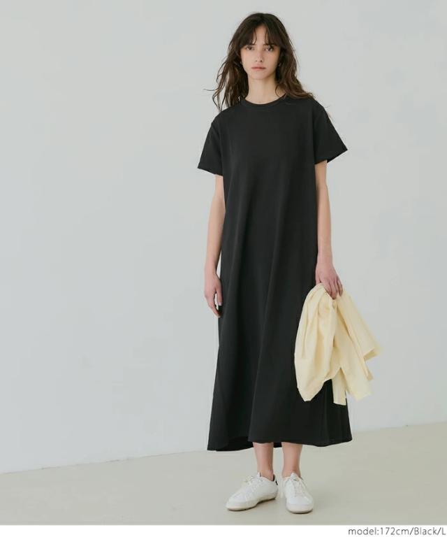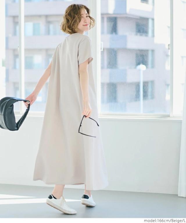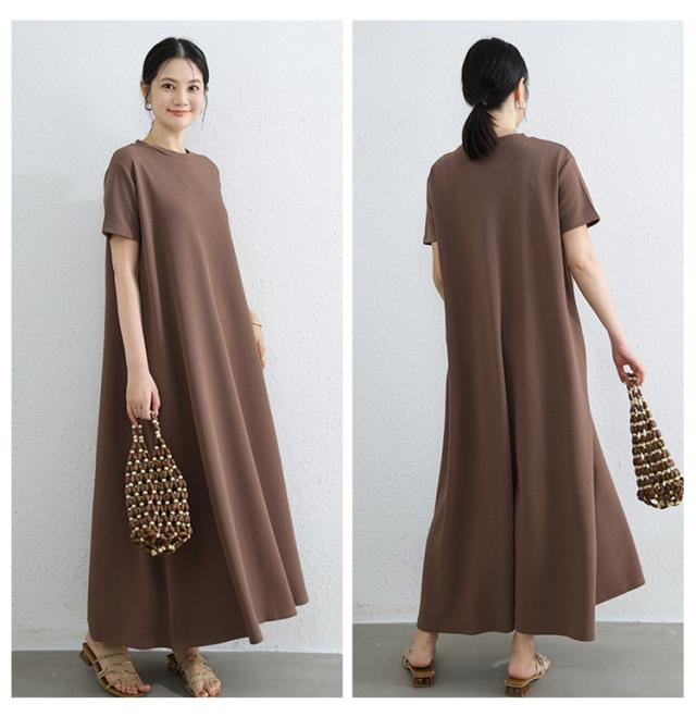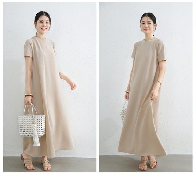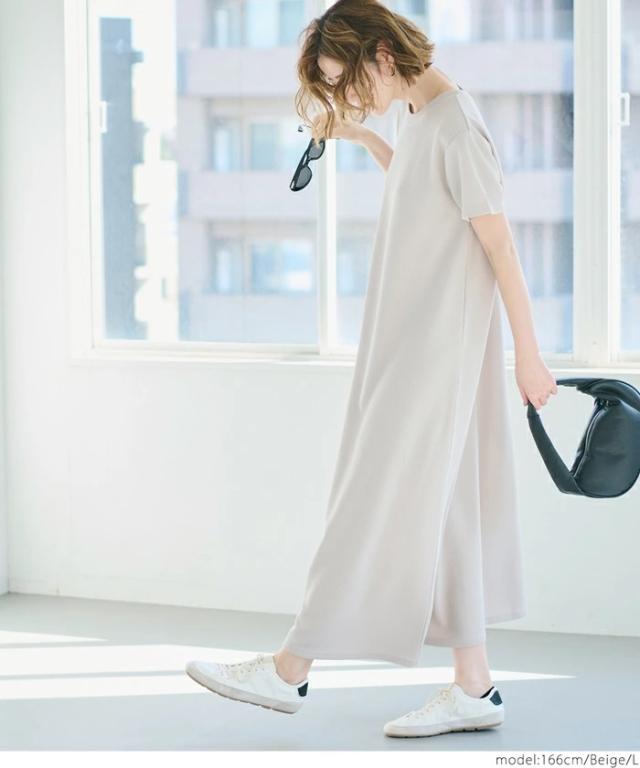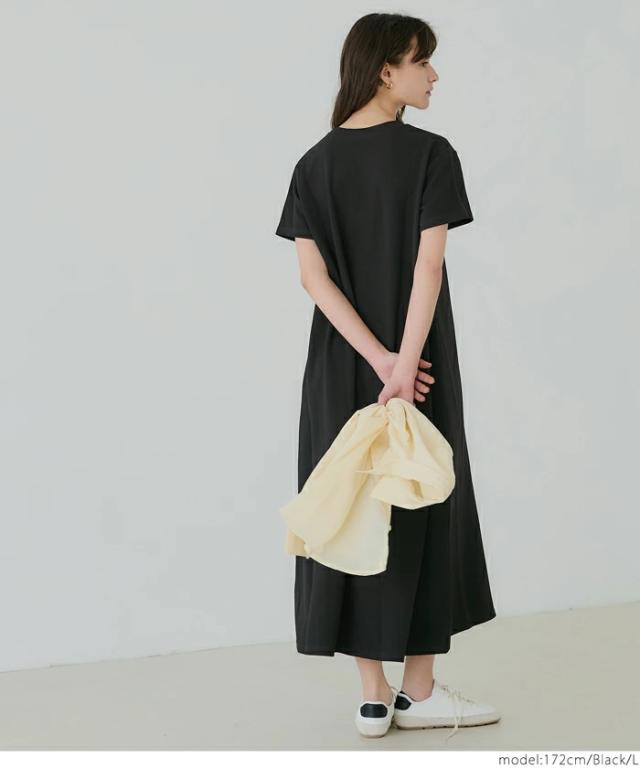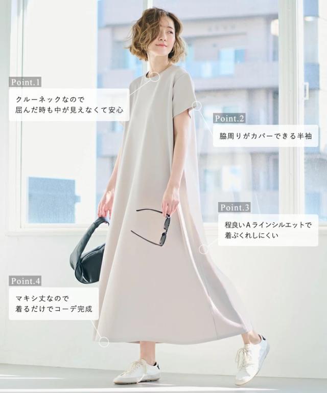 レディース ワンピース ロングワンピース ストレッチ 速乾 イージーケア プルオーバー エンボス エンボス加工 凹凸 体型カバー マタニティ 半袖 丸首 エンボス半袖マキシワンピース