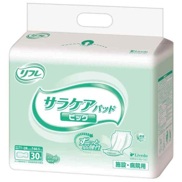 リフレ サラケアパッド ビッグ 尿取りパッド (6回吸収 / 30枚入) 大人用紙おむつ 横モレ防止 (男女兼用/介護用品) 透湿パッドタイプ