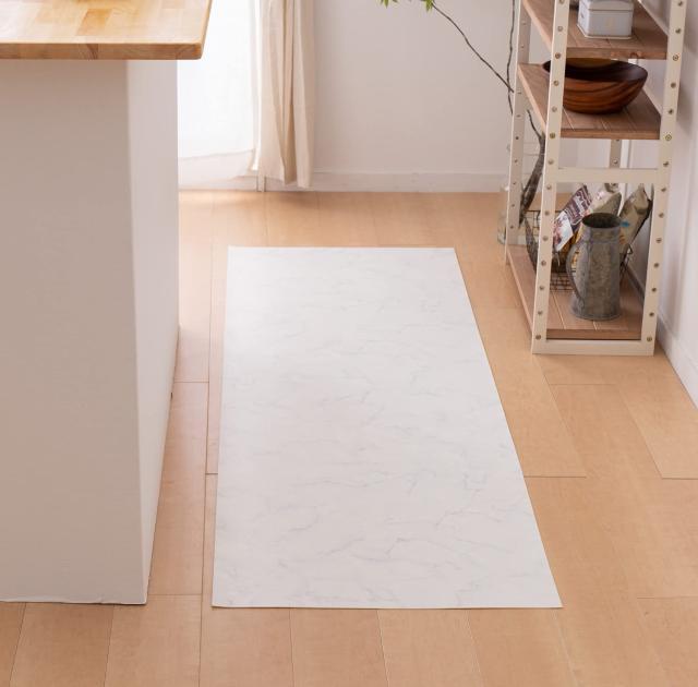◆商品名:萩原 クッションフロア キッチンマット (約60×120,大理石) 水拭きできる 防炎 抗菌 防カビ 滑り止め付き カットOK
