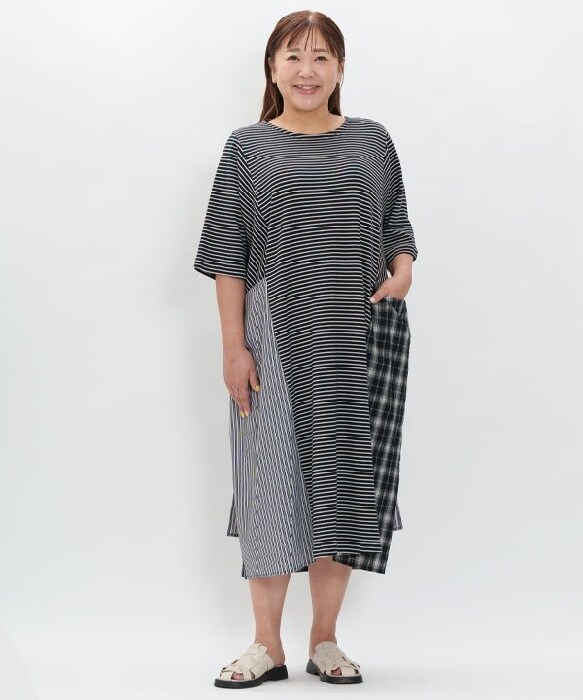 【大きいサイズ】線の集まりワンピース