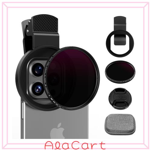 ALILUSSO ND2-ND400フィルター スマホクリップに付き 52MM Neutral Densityフィルター iphone、sharp、Pixel、sonyとファーウェイなどに