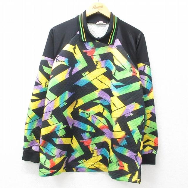 【商品名】 L★古着 長袖 トップス メンズ 80年代 80s 総柄 ラグラン 襟付き USA製 黒他